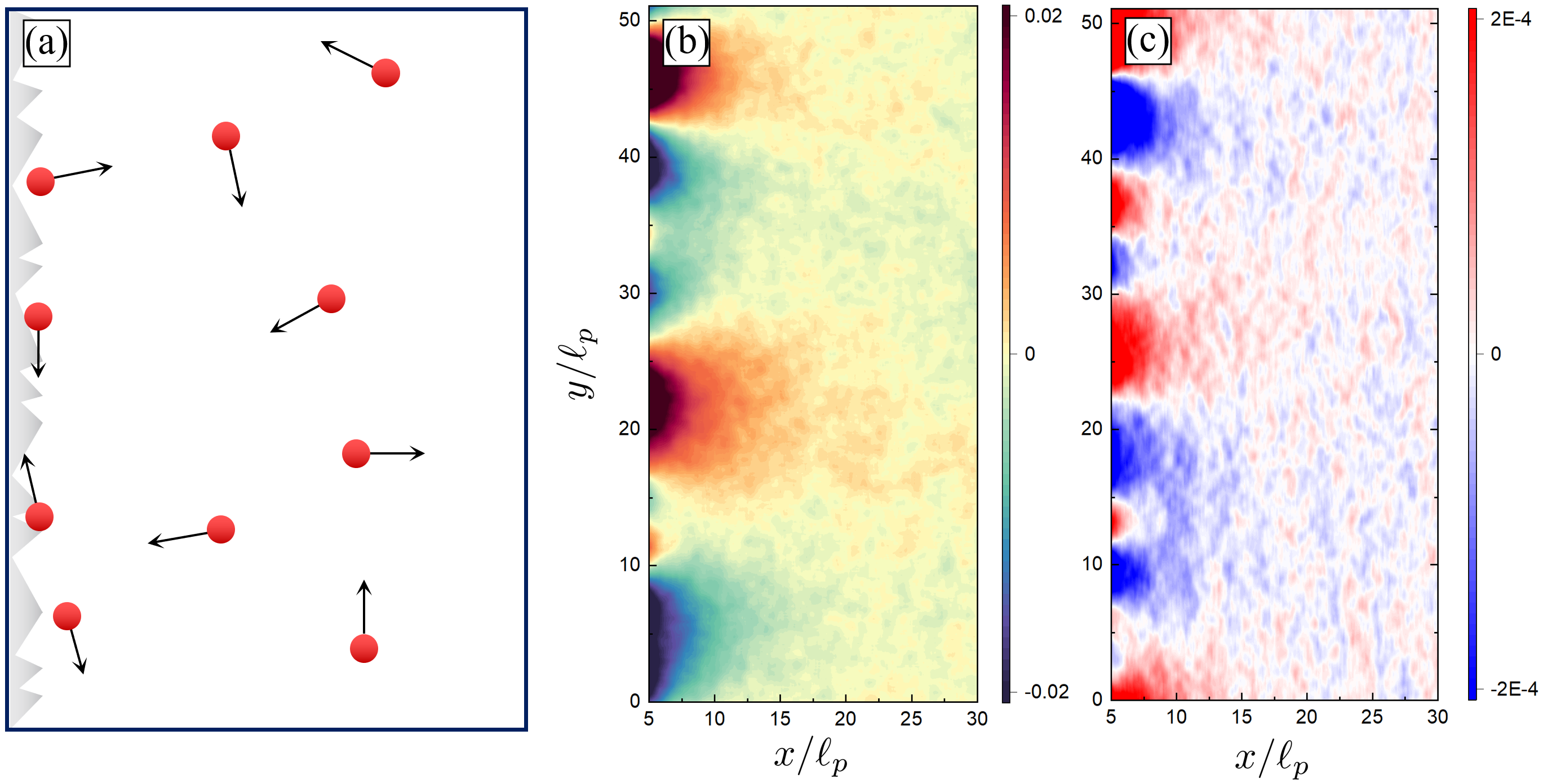 (a) Simulation setup (b) Density fluctuations (c) Current fluctuations (y-direction)