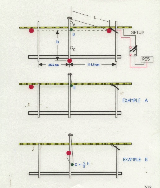 Adjust height of lower rod so that pendulum, when swung from horizontal position, just swings 180° around small rod.