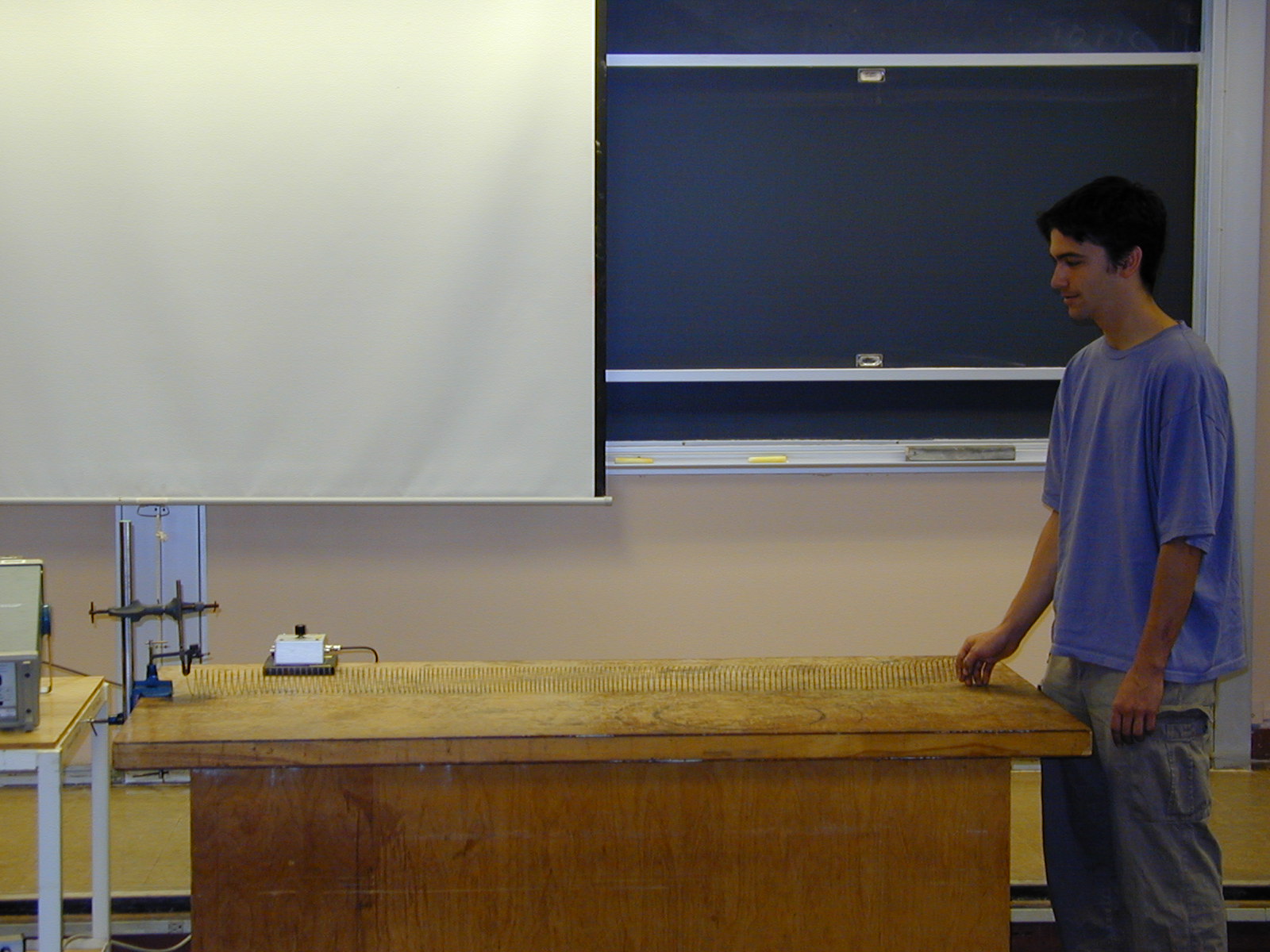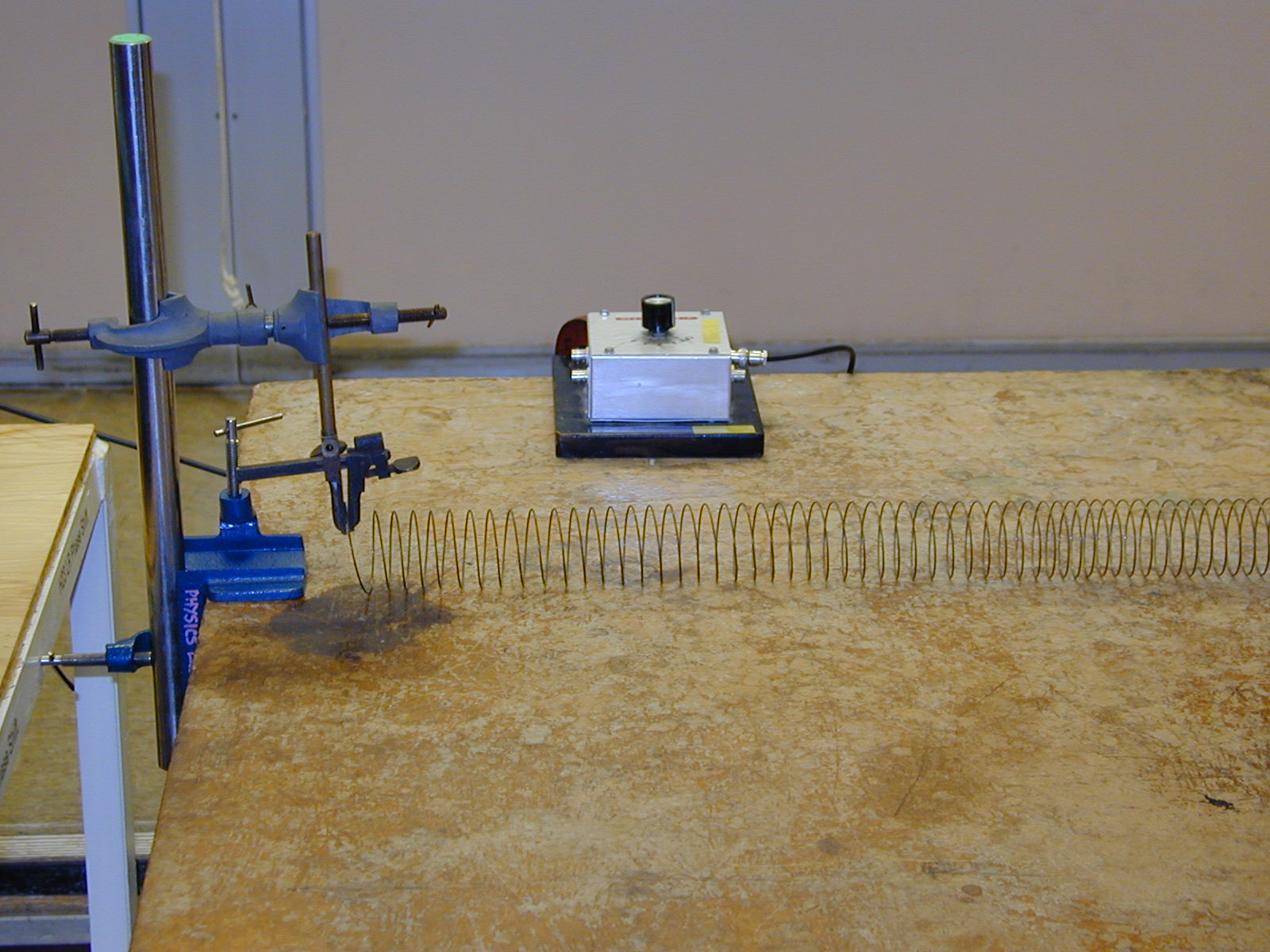 A stretched spring shows transverse wave motion and the motion of pulses. A slinky shows longitudinal waves.