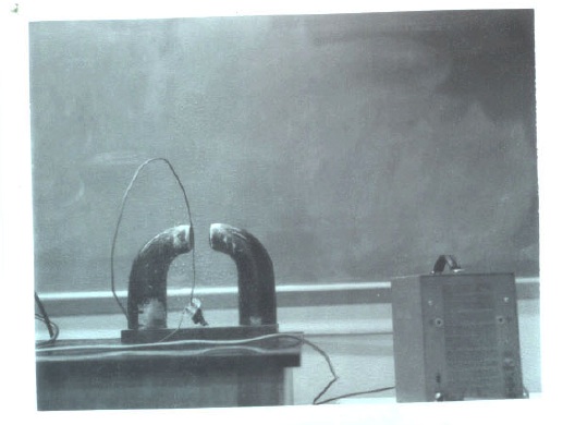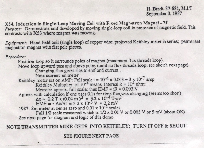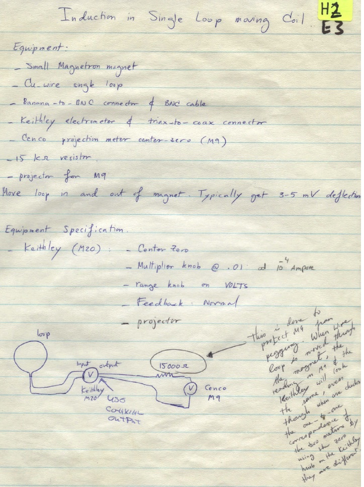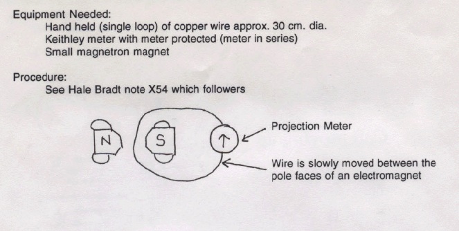 A single-turn copper coil is connected to the Keithley Electrometer. When the coil is moved through the magnetic field of a magnetron magnet the electrometer will deflect, giving a reading of approximately 3mV.