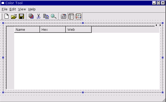If you preview the form (Ctrl+T) the File and Edit menus will be available and you'll be able to drag the toolbar either into an independent window of its own, or to dock it to the left, right, bottom or top of the window. The menus and toolbars are not yet functional, but we will rectify this as we progress. You leave preview mode by clicking the form's Close box (or the platform-specific equivalent).