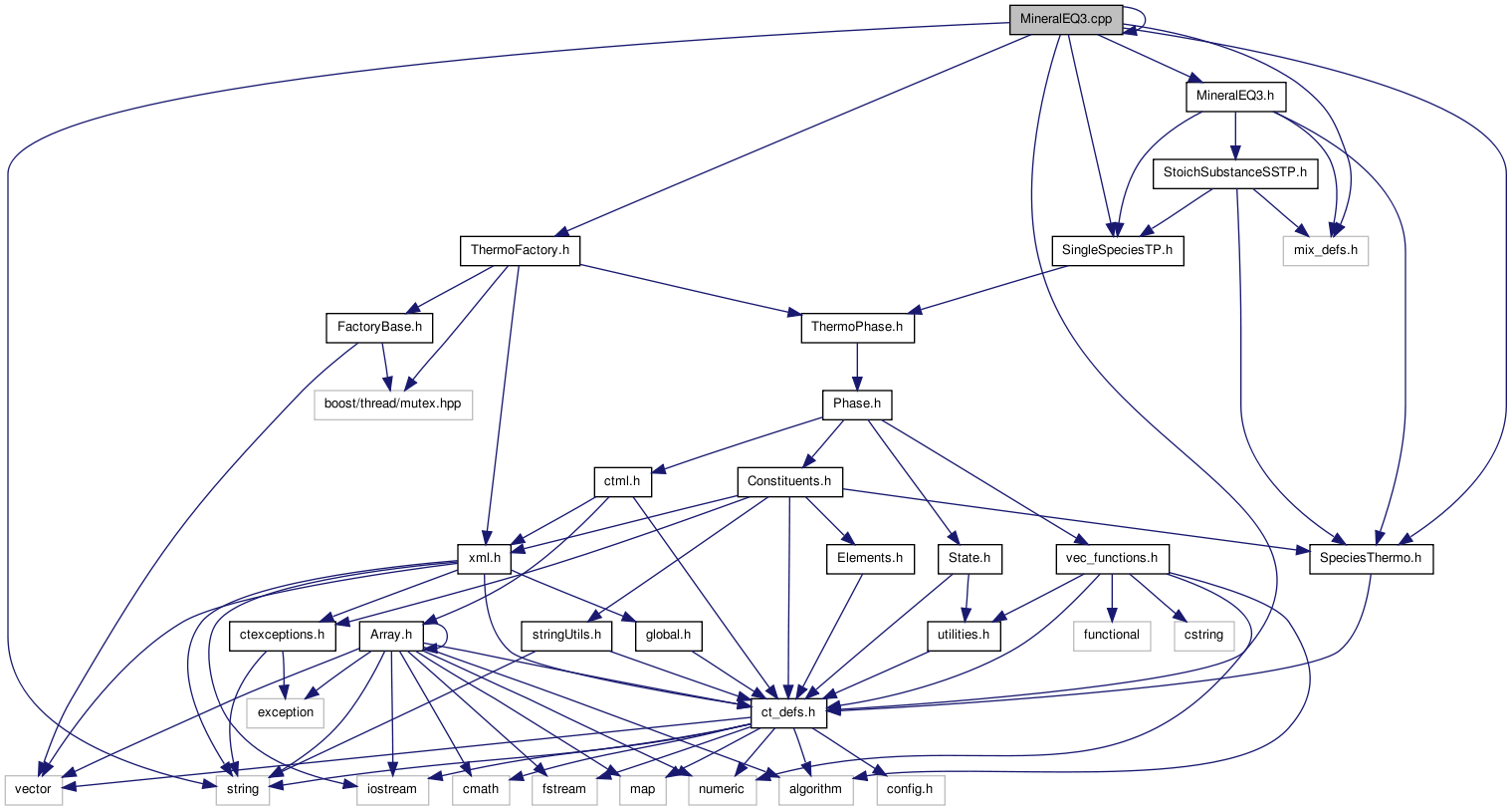 Definition file for the MineralEQ3 class, which represents a fixed-composition incompressible substance (see Thermodynamic Properties and class MineralEQ3). More...