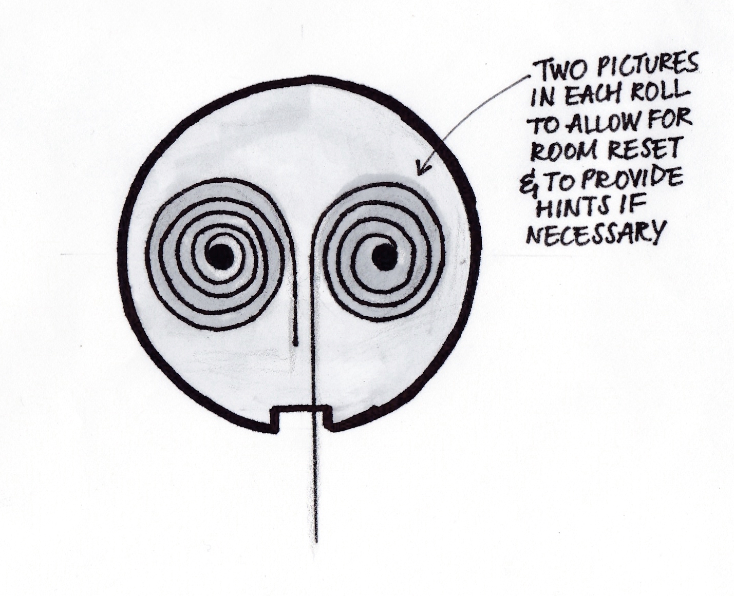 This figure shows the inside of the scroll - there are actually two pictures in each scroll! For the first picture scroll: There are two different room arrangements that the teams could be replicating, so that no manual reset is necessary (teams would be moving the jars back and forth)!
