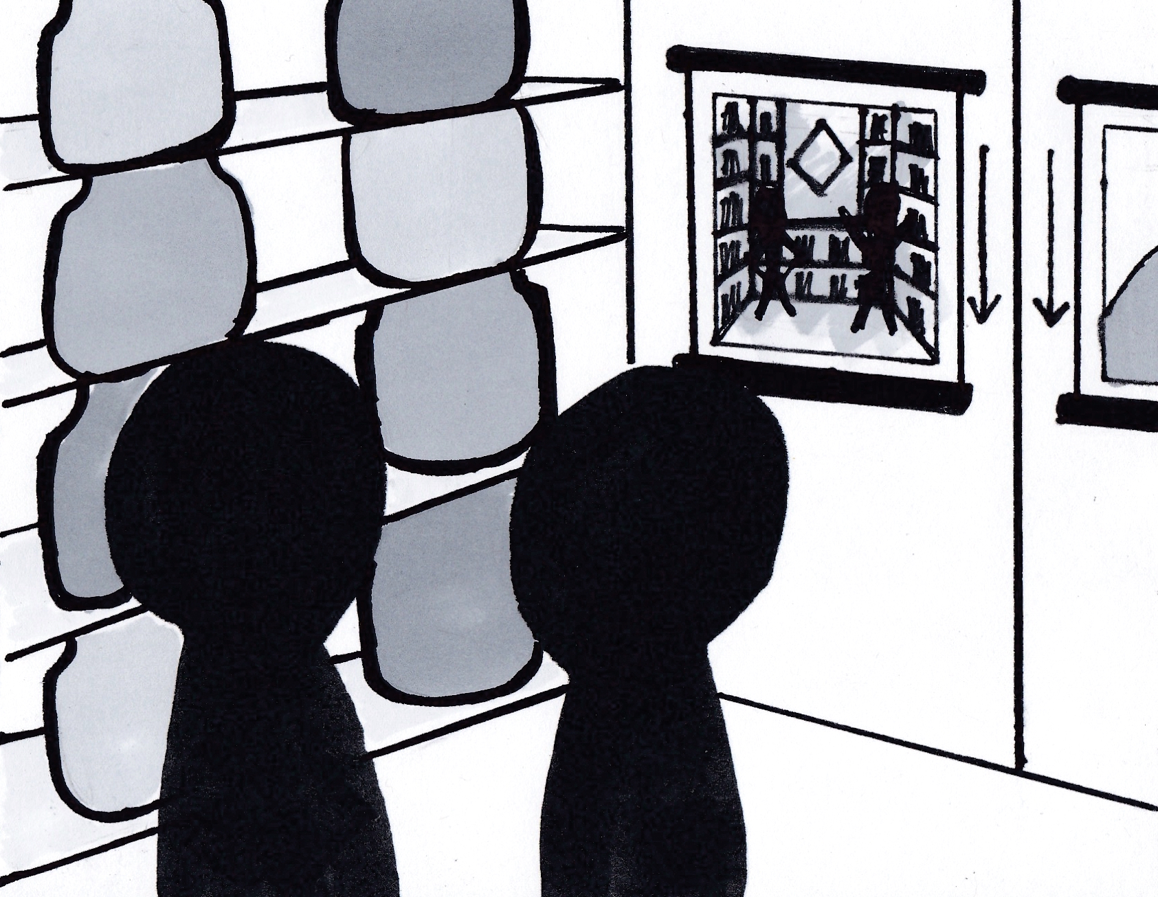 While the players are looking around the room and enjoying the aroma of tea, two picture scrolls have been unrolled on the door they entered from.