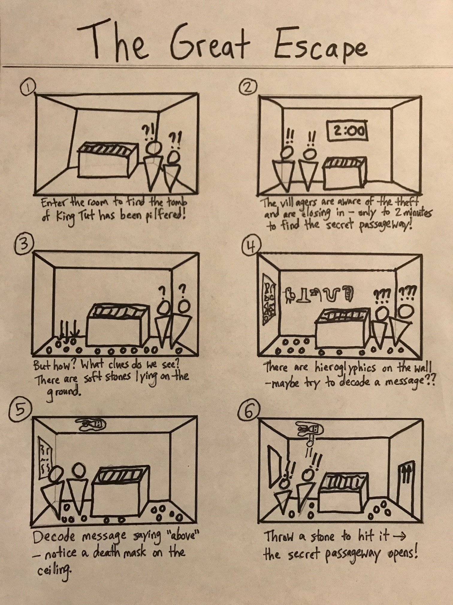 Storyboard of product concepts for using hieroglyphics in Ancient Egypt!