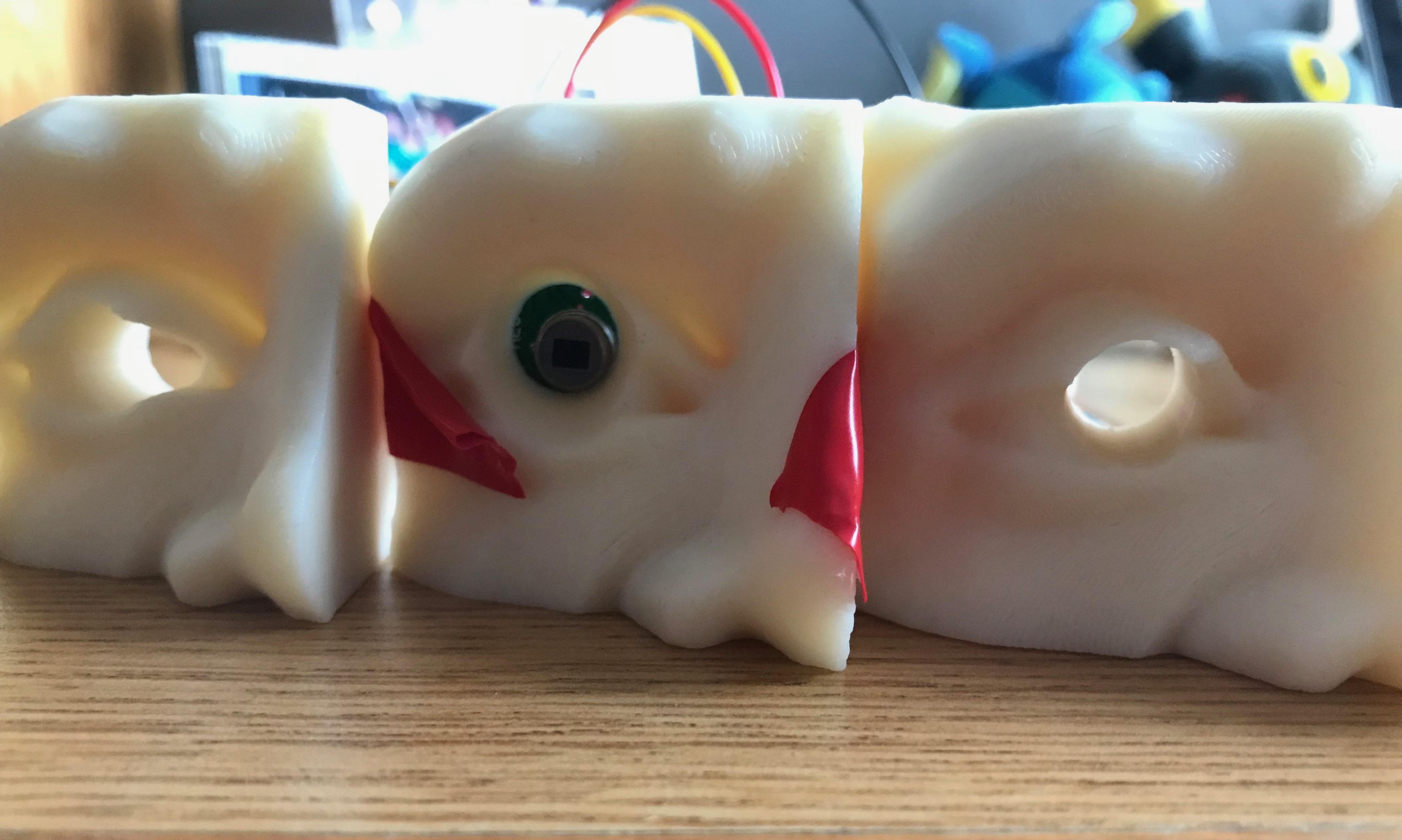 For the purposes of testing our initial ideas and expanding how we can execute the gags in our room, these tests were a success. A combination of Fresnel lenses (or lack thereof) and different eye geometries allow you to fine-tune the range that Medusa can see at any given point. Additionally, the use of PIR sensors allows for some interesting mechanics with Medusa's ability to see players in the same reflections that she is using to try to hunt them. Our tests indicate that a PIR sensor paired would a properly-selected photoresistor could allow Medusa to identify both players and the lasers that allow players to kill her. We have proven that a PIR sensor (when properly ported to a smaller microcontroller) can be embedded in a mask or statue, and with the use of the mask geometries, one can customize the difficulty of the players' task.