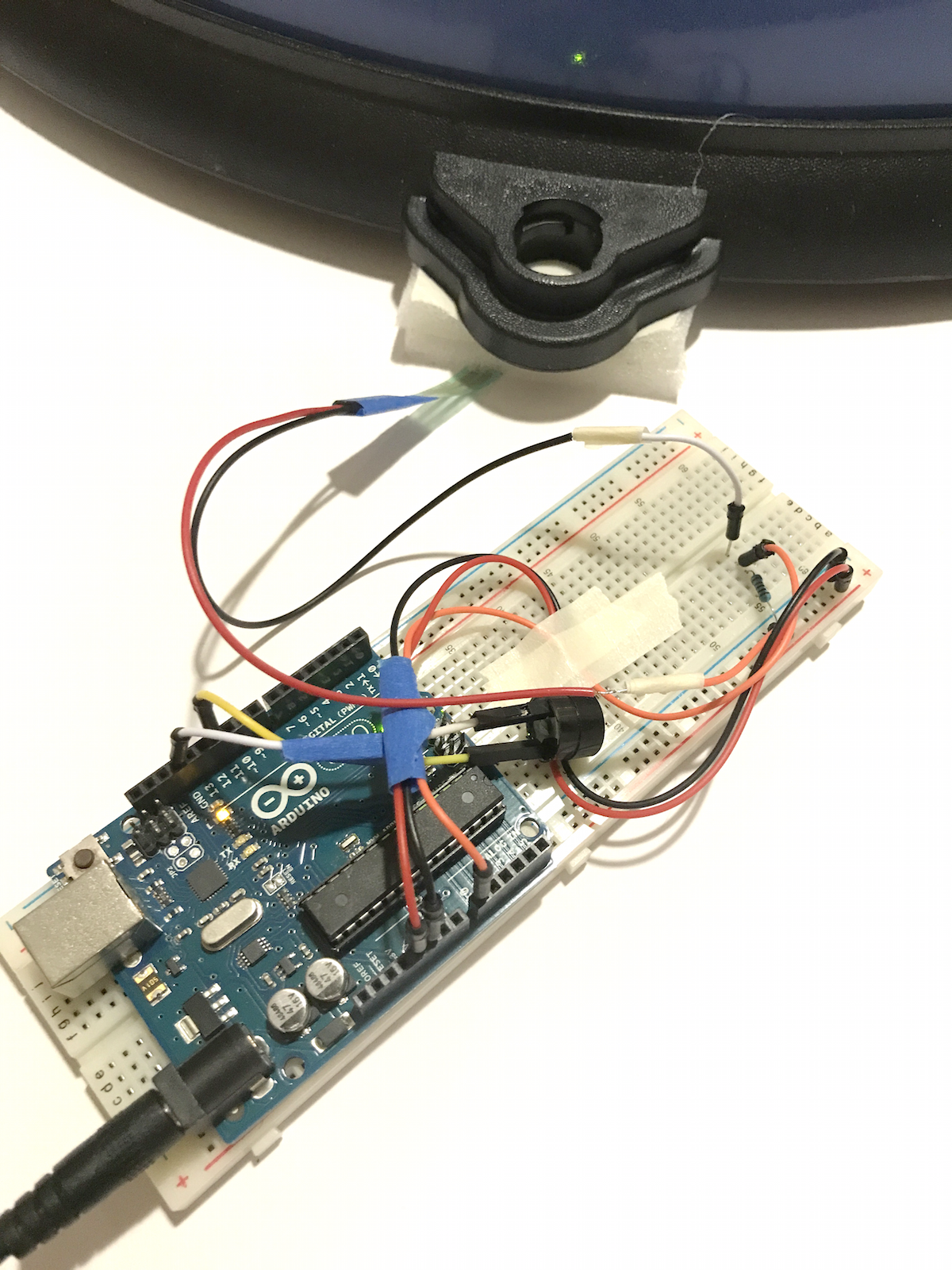 I also wanted to test if I could detect when users are kicking or putting weight on the balls. For this aspect, I was thinking about using force sensors, accelerometers, or motion sensors. I decided that a force sensor would be easiest to implement since it can be concealed between the wall and the flat side of the bosu half-ball. Accelerometers or motion sensors would have to be mounted on the outside.