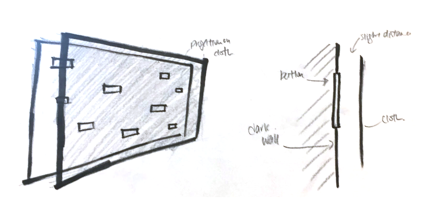 To that end, I designed the wall to have the switches stuck to a back wall with a piece of black cloth that could hover overtop, but not touch the switches. The cloth had to be close enough for the light from the switches to penetrate.