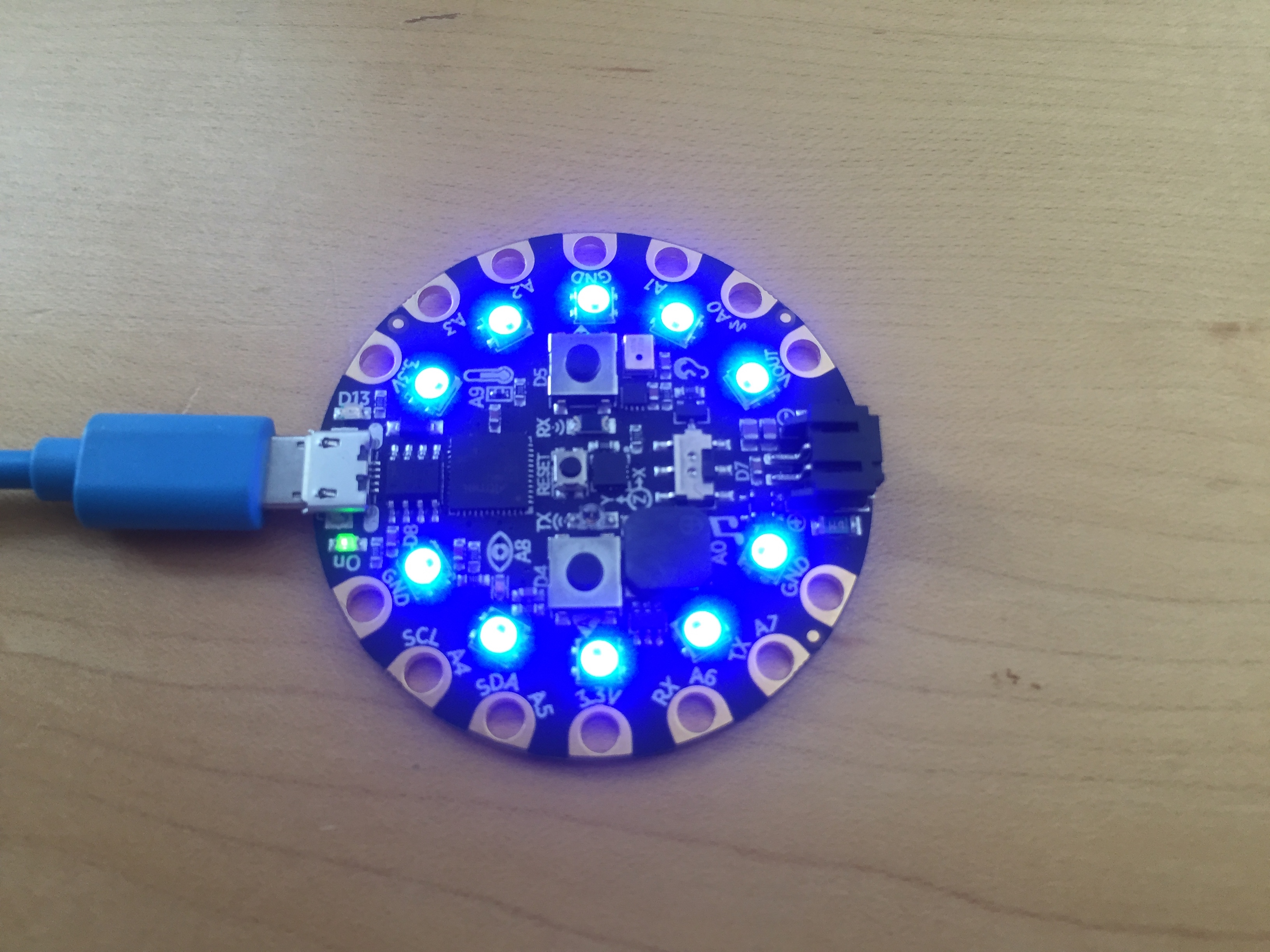 When the button is not attacked the virus, its always continuously lit blue as shown below:
