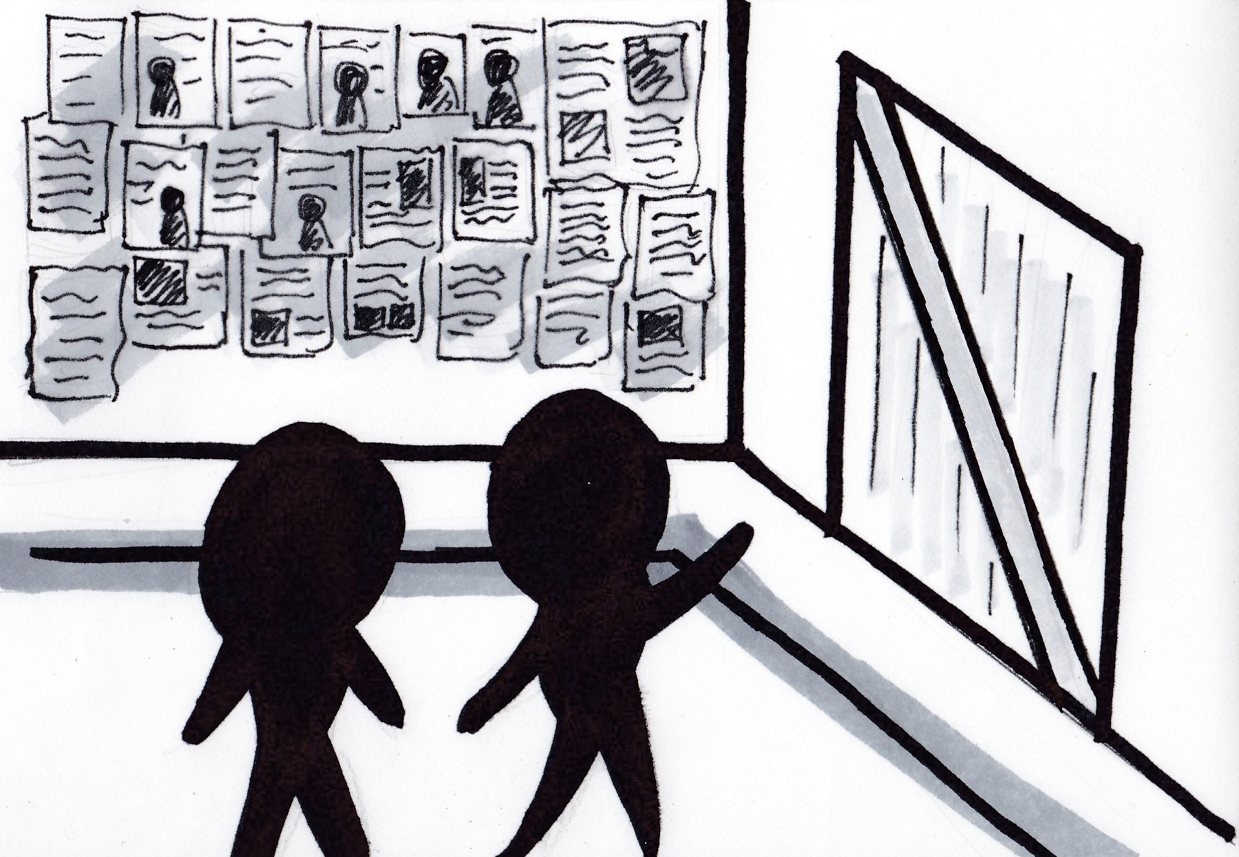 7. They realize that the quicker way to unlock the door is to look up the engravings on the locks.