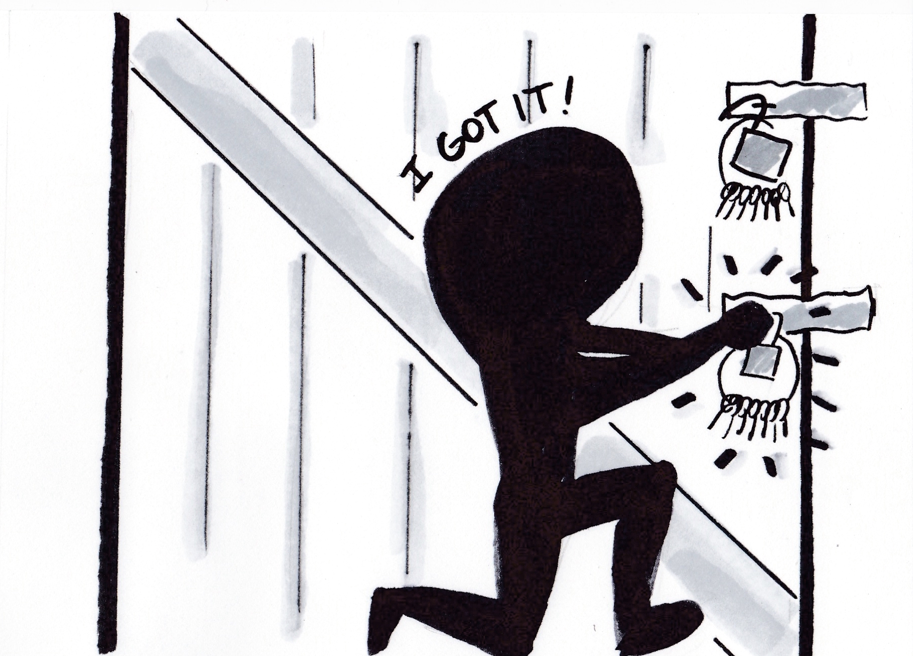 3. They decide that a clever way to unlock the door is to... try all the keys!