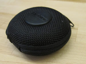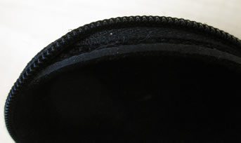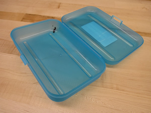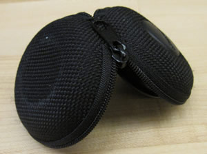 Both of these models were made of canvas and ribbon. They were both of an approximately cylindrical shape and I thought it would be interesting to explore a refined concept that had a more resistor-like shape with bulges on either end. I also wanted to explore a concept that was not pure fabric, but something more rigid. Aside from cloth pencil cases, I own a plastic case like the one below. I think this case works fairly well and it is a standard sold by the thousands each year when school is starting in August and September. I combined the idea of this case with the shape of a resistor making a pencil case that is approximately a cross-section of a resistor. Since I wanted the case to be more rigid to hold this shape, but really liked the look of the canvas and ribbon, I researched other types of cases and found that there are many sunglasses cases, portable hard drive cases, and other electronic cases that are mostly rigid yet laminated in fabric. Upon looking around my room, I discovered that owned one of these cases as can seen in the pictures below. It is essentially a slightly rigid plastic that has canvas on one side and felt on the other. It looks very nice and feels very nice as well.