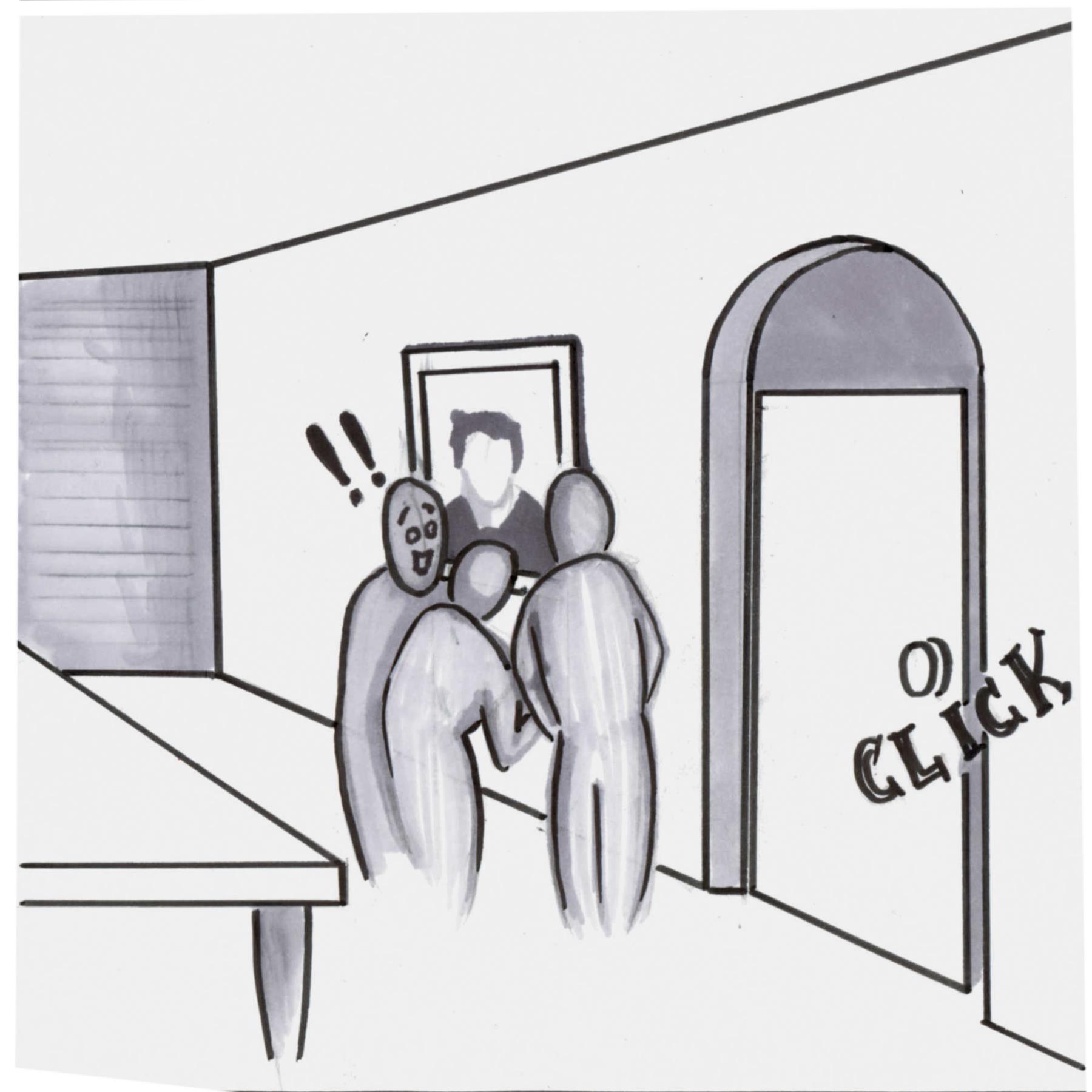 "I think that was the door!" When the correct sequence has been entered, the door is unlocked.