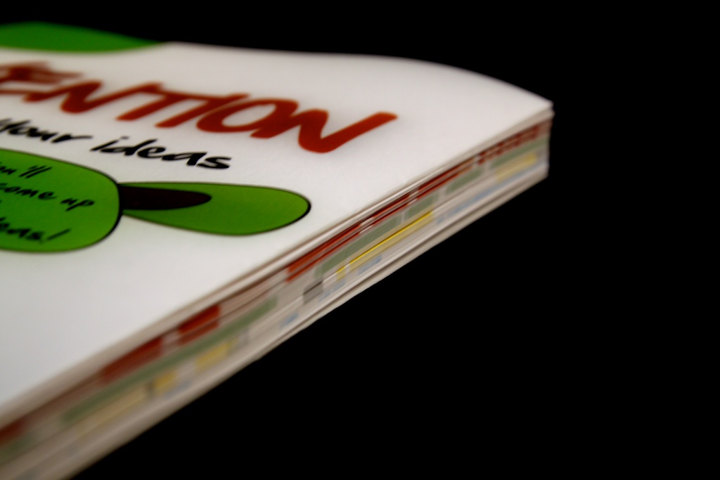 Much of the design work revolved around creating the content and form of the book. The interaction with the user was paramount in driving our design decisions. The feedback from tests on both 5th graders and 2nd and 3rd graders led to major changes in the format and content. We also gathered feedback from a few teachers and educators on making the content age-appropriate. We plan on contacting more educators, science and technology centers, and possibly some development psychologists to really target the content in a way that fosters creativity and invention. However, we want to be careful that in doing so we do not lose the tone and playfulness of the book. We also are looking at how to extend the line of the book. We are considering creating more content for perhaps an online interactive experience or simply more editions and installments of the Invention book.