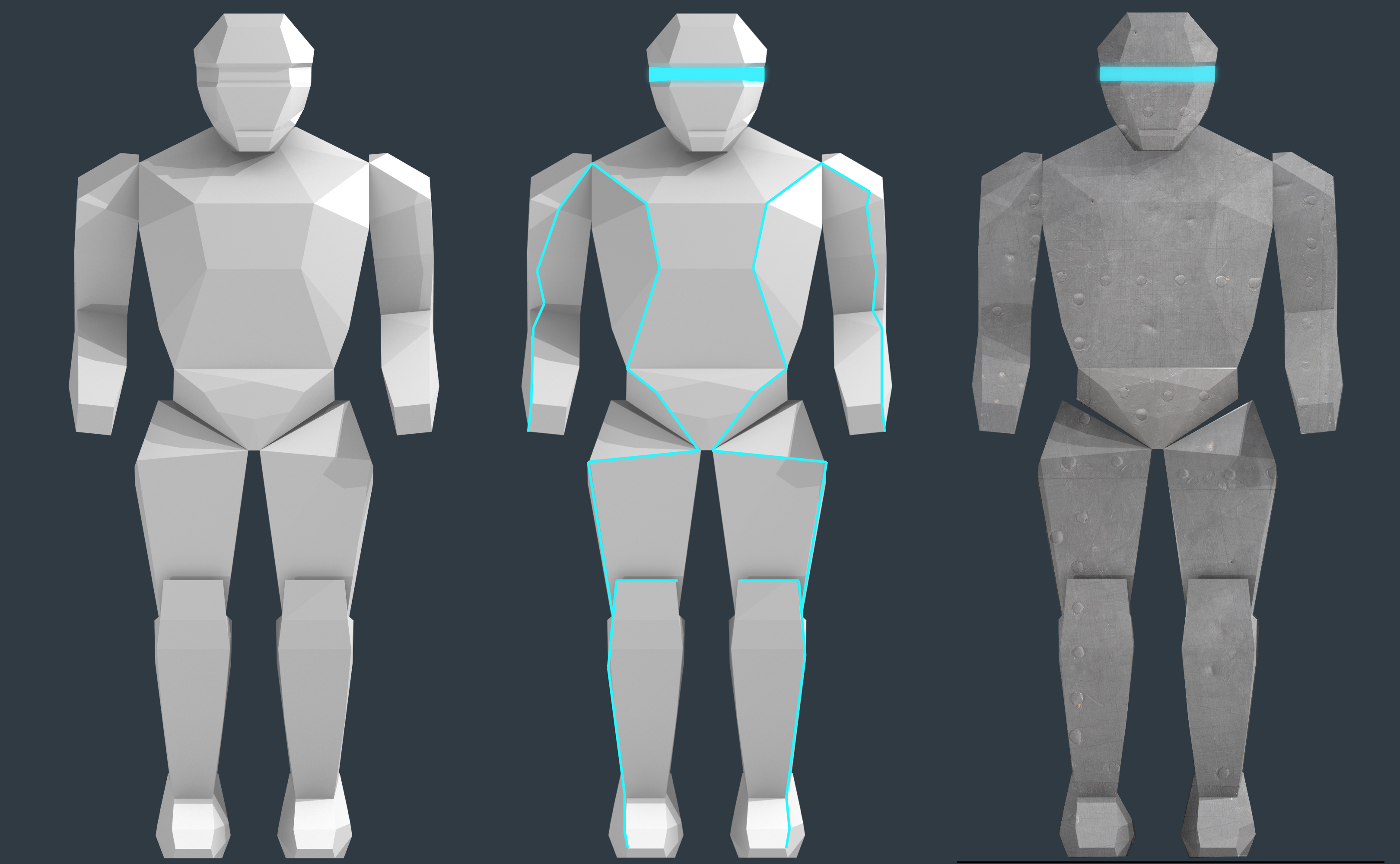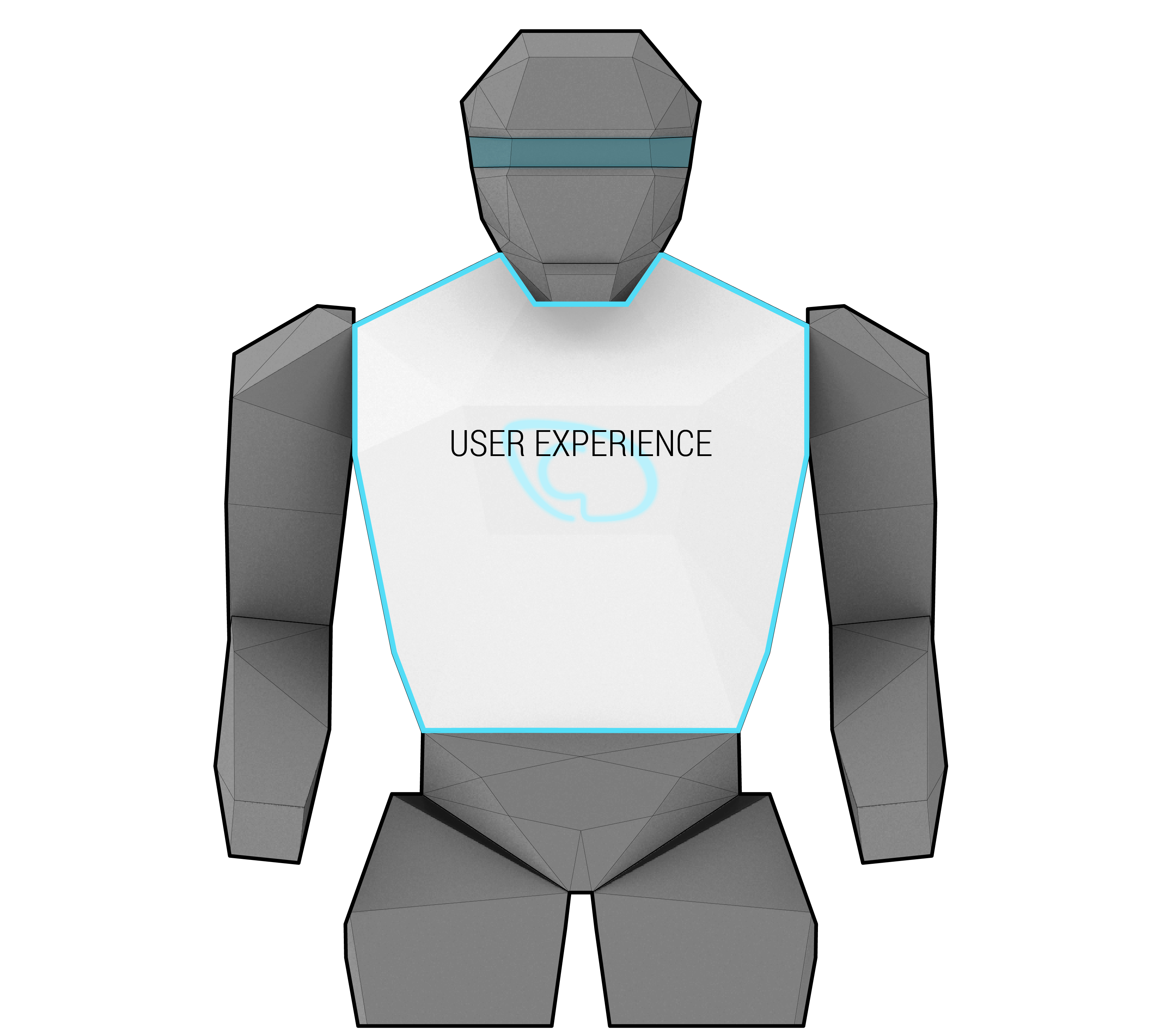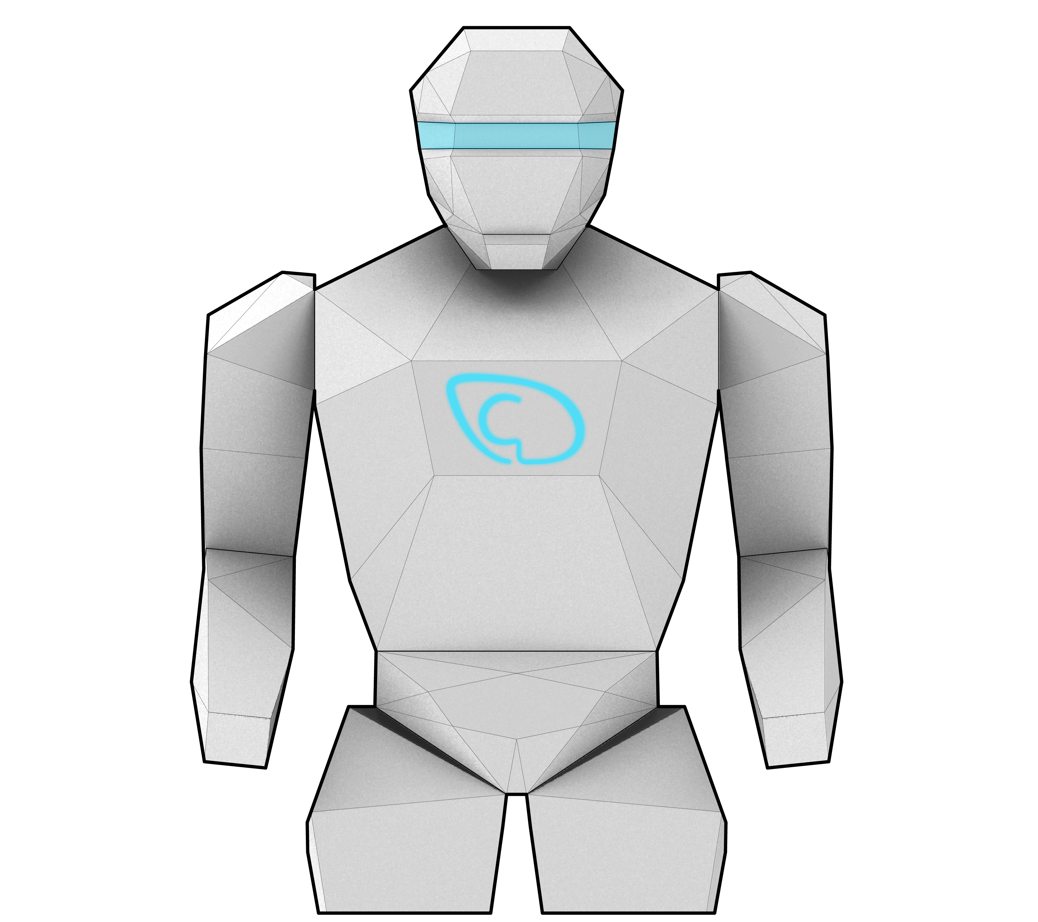 We initially designed Percy in a faceted form, but user feedback indicated that this form seemed agressive and scary, not the emotions we wanted to convey for our robot ally. We developed a second design composed entirely of C2 curvature to communicate friendliness and hi-tech sophistication. We conducted user interviews and found that this new form came across as too friendly and not as a robot that could protect the 5W!TS visitors once it was assembled. From this feedback we decided to continue with the faceted form, but we updated the geometries to be less angular and to communicate a strong and lean body for our robot instead of the bulky and overly muscular original form.