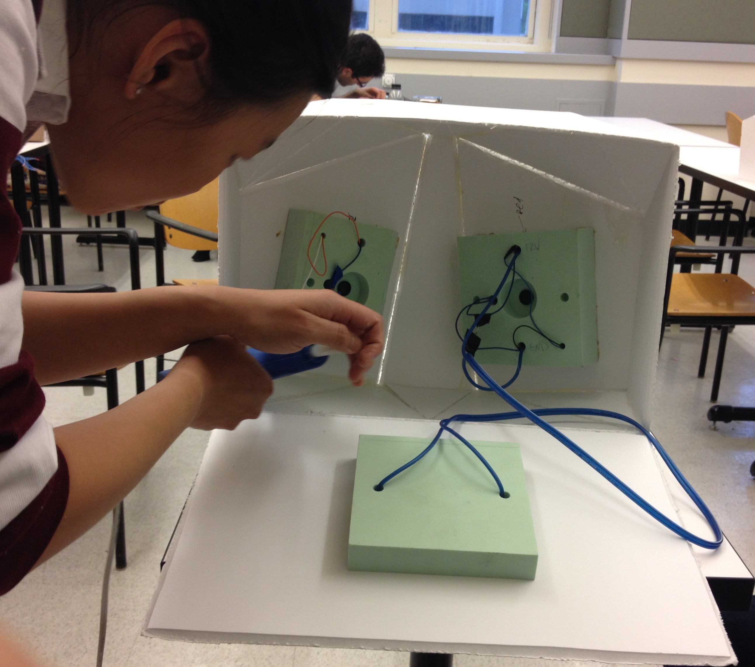 For this prototype, we had budgetary and time constraints that greatly dictated our fabrication and material choices. Each of Percy's parts are constructed with foamcore, and the interal joints consist of electromagnets, steel, and aluminum contacts.