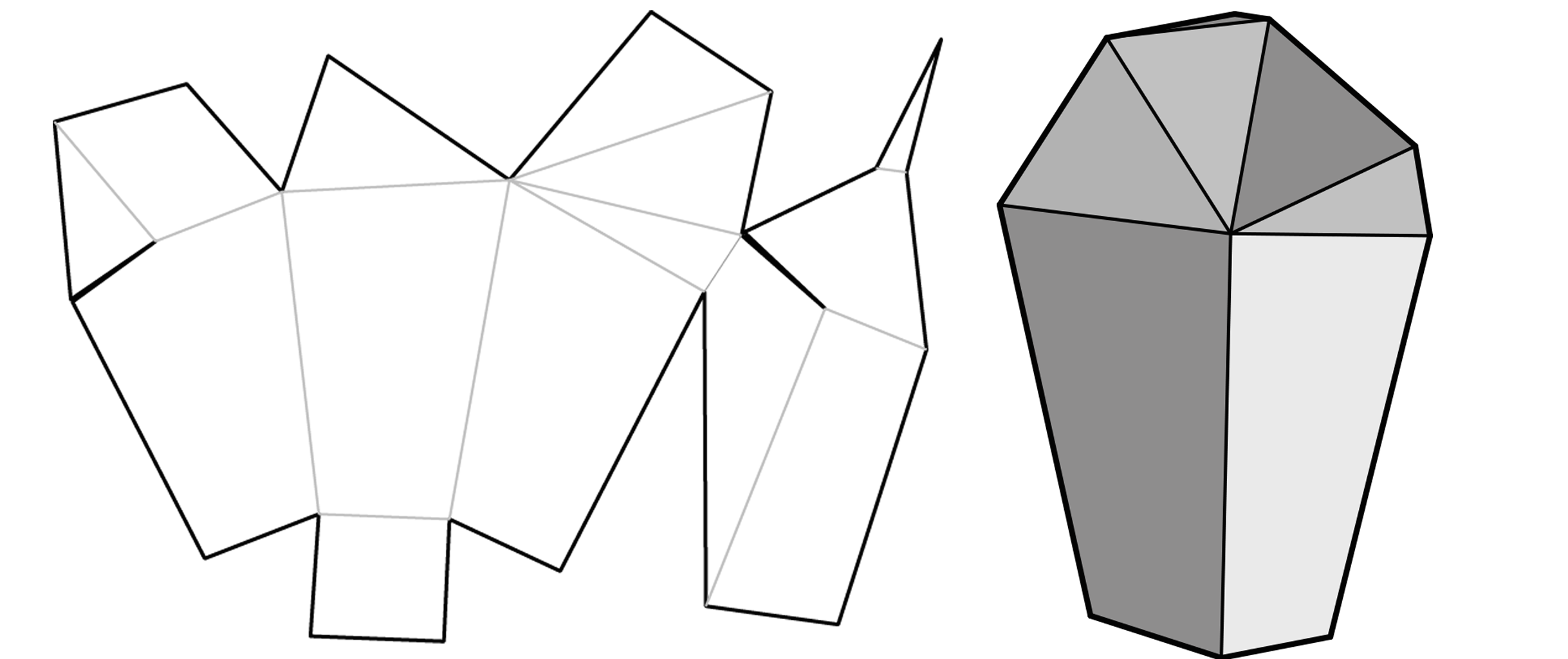 We converted our 3D CAD model of Percy into a 2D model that we CNC routed out of foamcore. We folded each of these cut foamcore sheets to form each 3D robot part, leaving a flat at each end so that we could insert the joints. Foamcore was chosen as a material because it is cheap, light, and could be folded without breaking under strain.