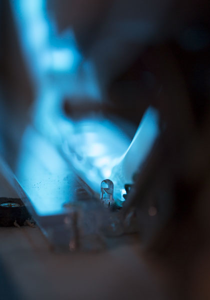 The black channel that surrounds the IR receiver sensor serves to limit what the sensor actually can see. A longer and narrower channel necessitates a precise alignment between the receiver and emitter, and a shorter, wider channel allows the receiver to view a broader channel of IR light, enabling a broader sensing zone in the doorway. The ideal configuration of sensor and emitter will be critical to the effectiveness of this sensor setup.