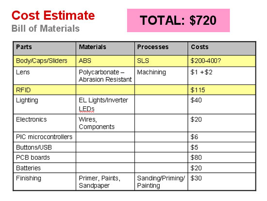 Below is a cost estimate of how much it cost Team America to make 1 clue scanner: