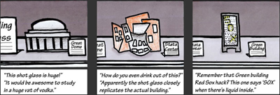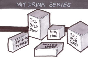 A move was made towards revealing MIT hacks when the idea of a semi-frosted shot glass set was modeled.