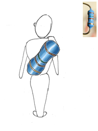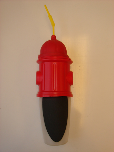 A very simple implementation of the squeezable water bottle serves to give a sense of the dimensions of a 750 ml bottle with some design touches that relate to the fire hydrant theme.