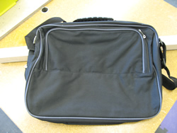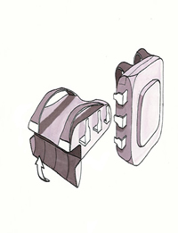 The final design for the sketch model mirrors that of an eight-pin microchip (# 555 timer IC shown above on the left), and takes the form of a conventional laptop bag (shown on the right) suitable for 15" laptops. |