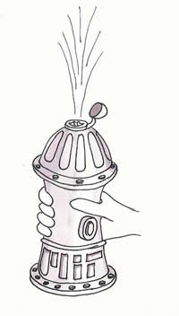 The concept sketch above on the left describes another interpretation of the fire hydrant cup. It is a squeezable water bottle, and mimics the functionality of sports bottle such as that shown to the right. |