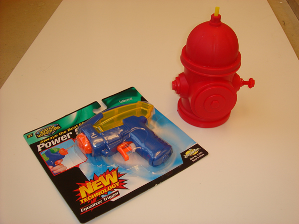 (An extra squirt gun is also shown to give an indication of the size of the components used in the hydrant bottle) |