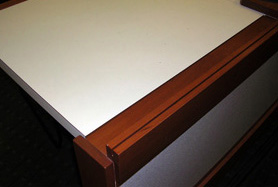 Your first assignment is to design yourself a name card for use in the 3-370 classroom. When you are in class, note that there is a slot along the front of your desk (see photographs below). This is a name card slot.