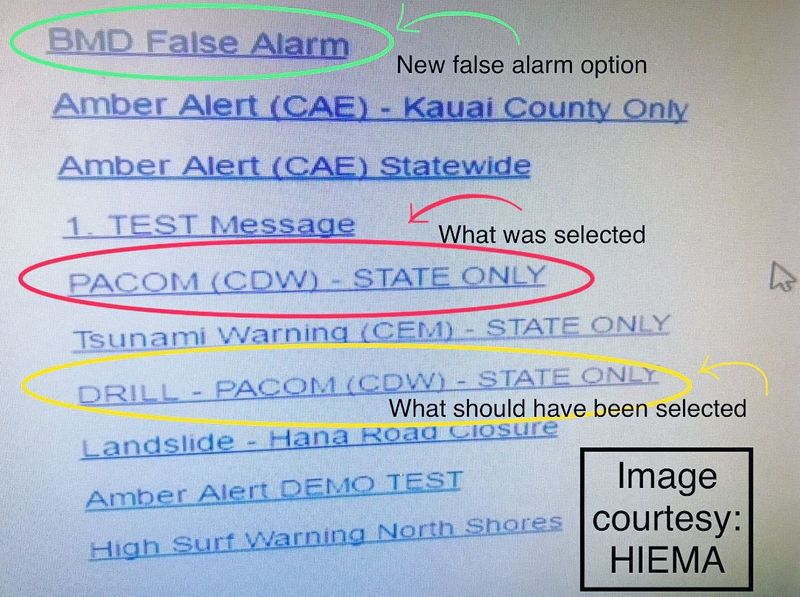 This incident brought the design of the HIEMA (Hawaii Alert Management Agency) alert system UI, shown below under scrutiny.