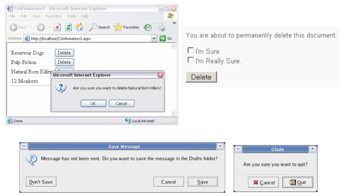 An unfortunately common strategy for error prevention is the **confirmation dialog**, or "Are you sure?" dialog.