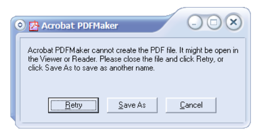 Next, your message should be **constructive**, not just reporting the error but helping the user correct it. Suggest possible reasons for the error and offer ways to correct them--ideally in the error message dialog itself. Here's a good example from Adobe Acrobat.