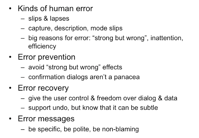 The slips and lapses we've discussed have a few features in common. First, the root cause of these errors is often **inattention**. Since slips and lapses occur in skilled behavior, execution of already well-learned procedures, they are generally associated with insufficient attention to the execution of the procedure, or omission or distraction of attention at a key moment.