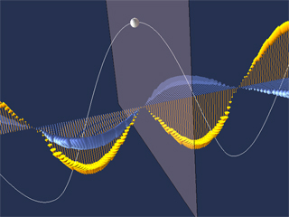 This Java3D simulation illustrates how one can generate electromagnetic radiation by oscillating a sheet of charge.