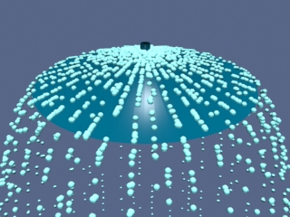 The animation shows a source of particles. The particles