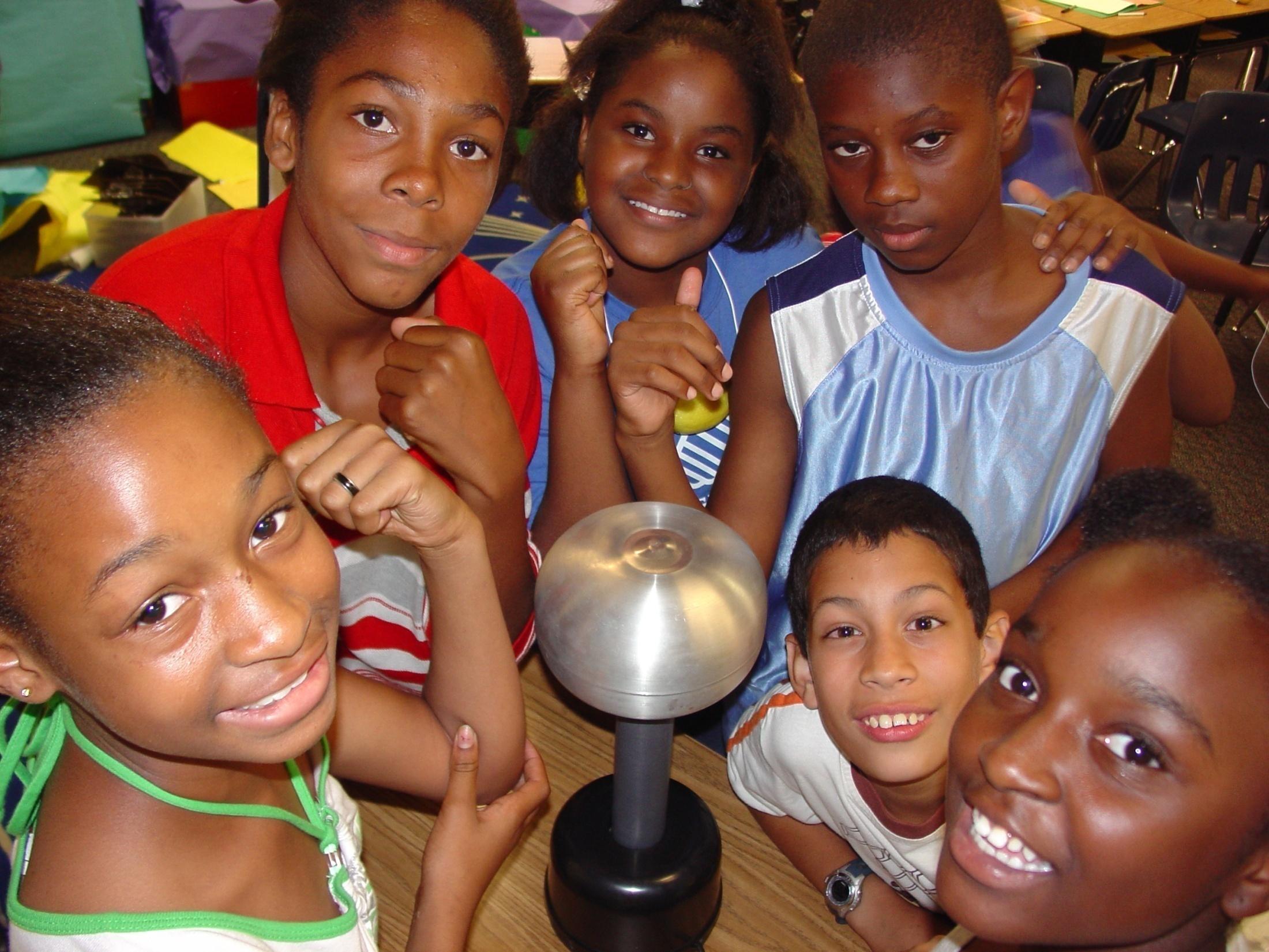 Students at Killian Elementary School excited to guess what is in the box on their first day of Science Captivates Minds, my hands-on Science Camp. July 2006. Photo Credit: Graham Van Schaik |