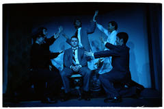 Jimmy Powers (Greg Pollock, center) and the Angel City 4 (Beth Siers, Caitlin Marlow, Brian Wong, David Zych), in rehearsal