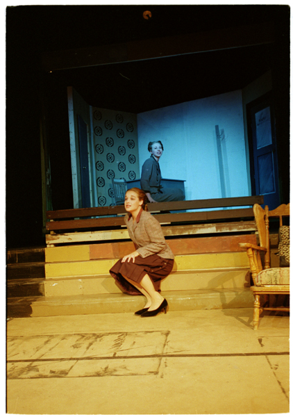 Gabby (Kim Seluga '01) and Oolie (Jennifer Berk '01) lament the