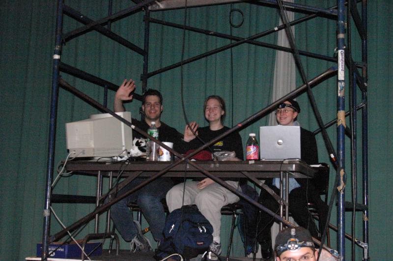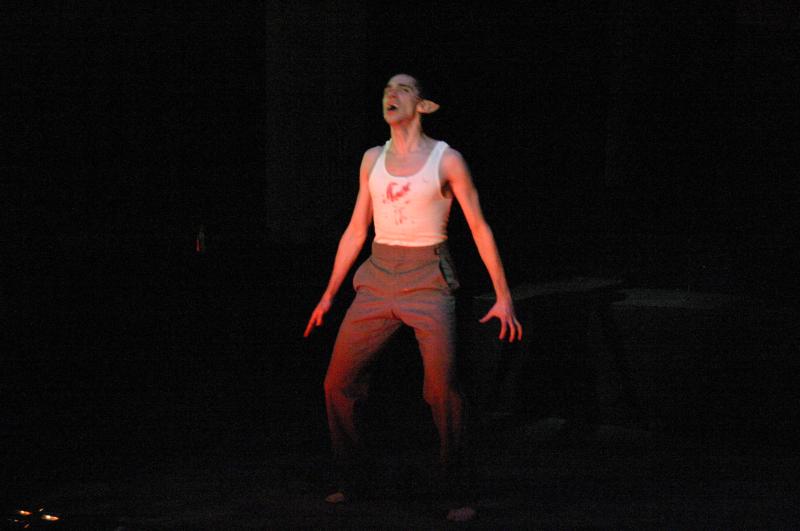 Meredith (ML Peters, left) and Shelley (Nori Pritchard) decide on a name for the Bat Boy (David Poland, center). (credit: Jax Kirtley) Bat Boy (David Poland) and Dr. Parker (Paul Giragos), surrounded by scary voices, reach a mutual detente. (credit: Jax Kirtley) Dr. Parker (Paul Giragos), Shelley (Nori Pritchard) and Meredith (ML Peters) test Edgar (David Poland) on his knowledge. (credit: Jax Kirtley) Rick (Pete Chambers, right) decides to take a vote about the fate of the Bat Boy. (credit: Jax Kirtley) Mrs. Taylor (TR Jordan, kneeling) grieves over the death of her son while townspeople (Edmund Golaski, Joe Lowery, Heather Doering, Welkin Pope) look on. (credit: Jax Kirtley) Meredith (ML Peters) and Dr. Parker (Paul Giragos) recall the origins of the Bat Boy. (credit: Jax Kirtley) "Hold Your Bat Boy" (credit: Jax Kirtley) Jamez Kirtley, Heather Brundage, and Erin McLaughlin in the "booth". (credit: Jax Kirtley) |