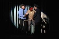 Barrell (Rob Morrison) and Lockstock (Rogue Shindler) prepare to cart Bobby (Steven Flowers) off to Urinetown. (credit: Jax Kirtley)