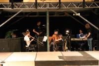 The Urinetown orchestra (Carol Novitsky, percussion; Phillip Ilten, trombone; Jamez Kirtley, bass; Andrew Greenhut, reeds; Elliot Brandow, drums; Joanne Bruno, keyboard; Liz Zakszewski, conductor) (credit: Jax Kirtley)