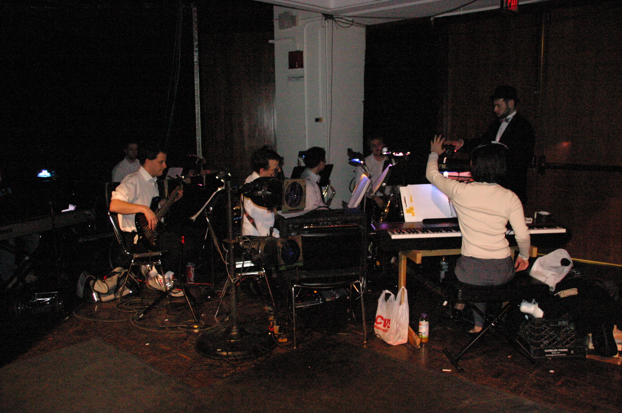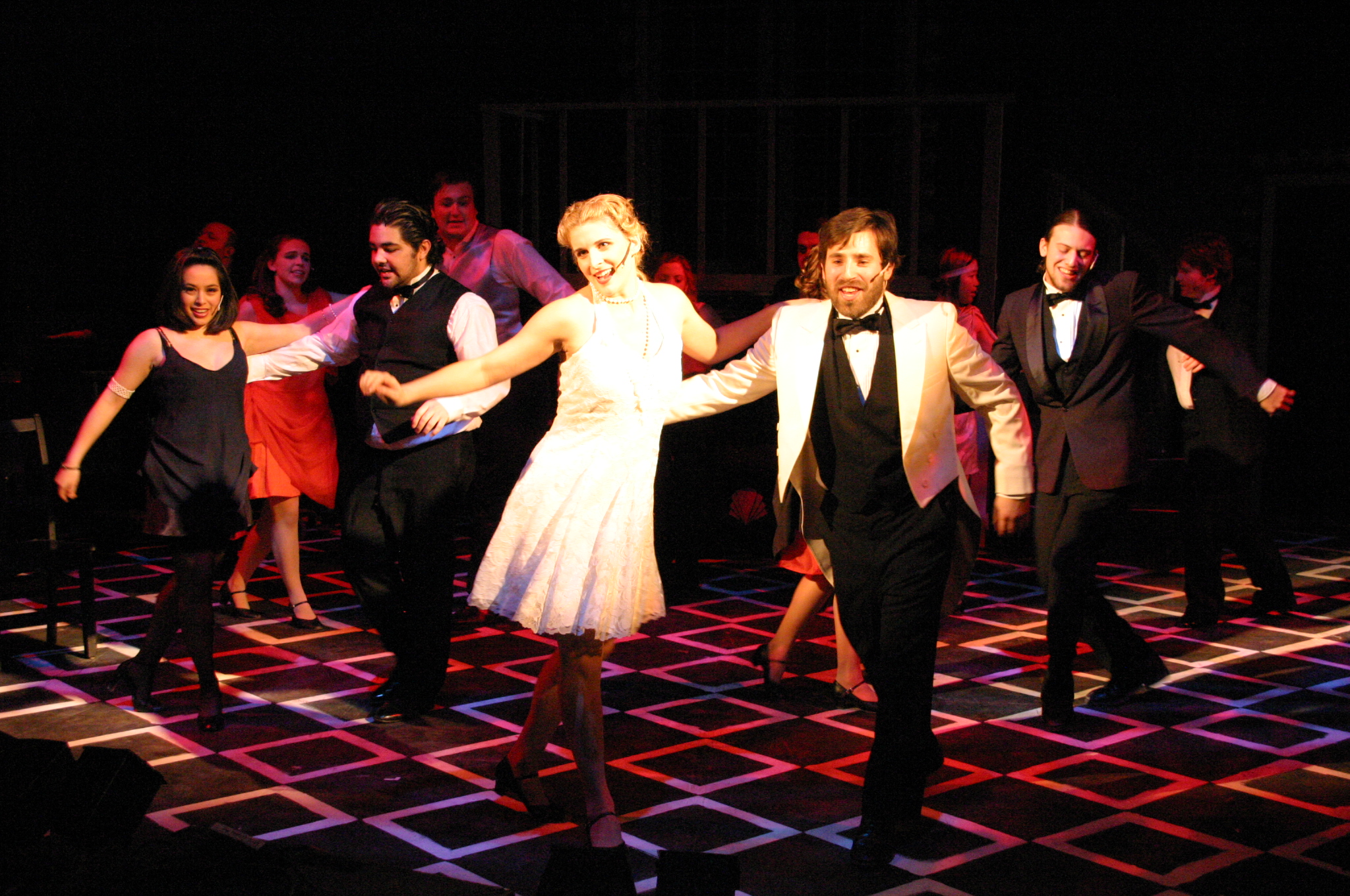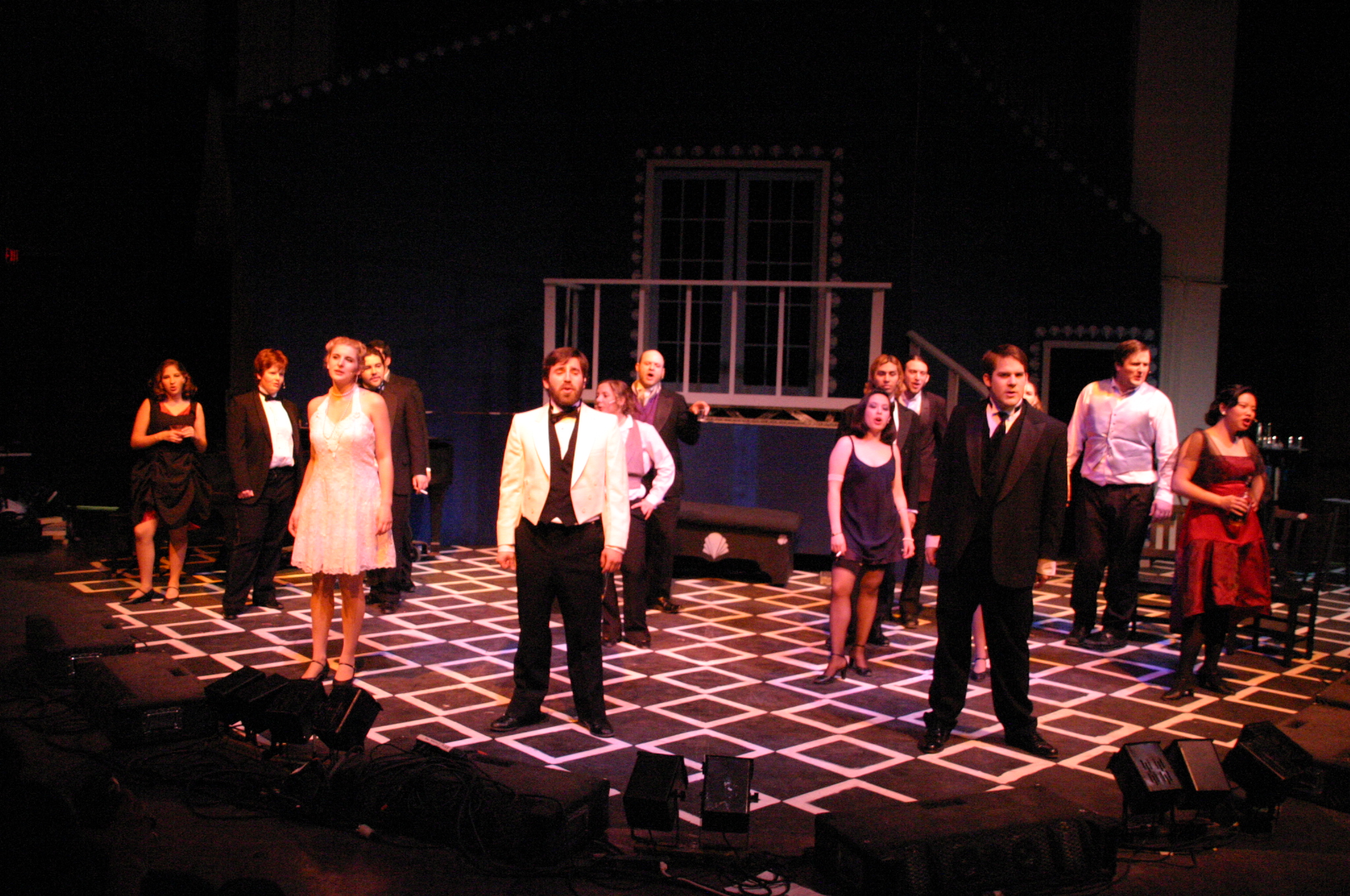 Apartment: Queenie (Carrie A. Lee '10), Burrs (Matthew Cibborowski '08), Ensemble (Balcony L to R: Luis C. Loya '06, Darrell Cain '08, Nicolina Akrahoff '07, Estevan Milo Martinez '08, Helen O'Keefe '09, Dave Berger, Carlos Cardenas '09, Matt Peairs '09, Karen Hart '11, Karen Wong '10, Krista Sergi) (credit: Jax Kirtley) An Old Fashioned Love Story: Madeline True (Krista Sergi) (credit: Jax Kirtley) What is it about her: Kate and Burrs (Danbee Kim '09 and Matthew Cibborowski '08) (credit: Jax Kirtley) Let me Drown: Burrs (Matthew Cibborowski '08) (credit: Jax Kirtley) Make me Happy: Black, Burrs, Queenie (Matt Stern '08, Matthew Cibborowski '08, and Carrie A. Lee'10) (credit: Jax Kirtley) Orchestra (credit: Jax Kirtley) |