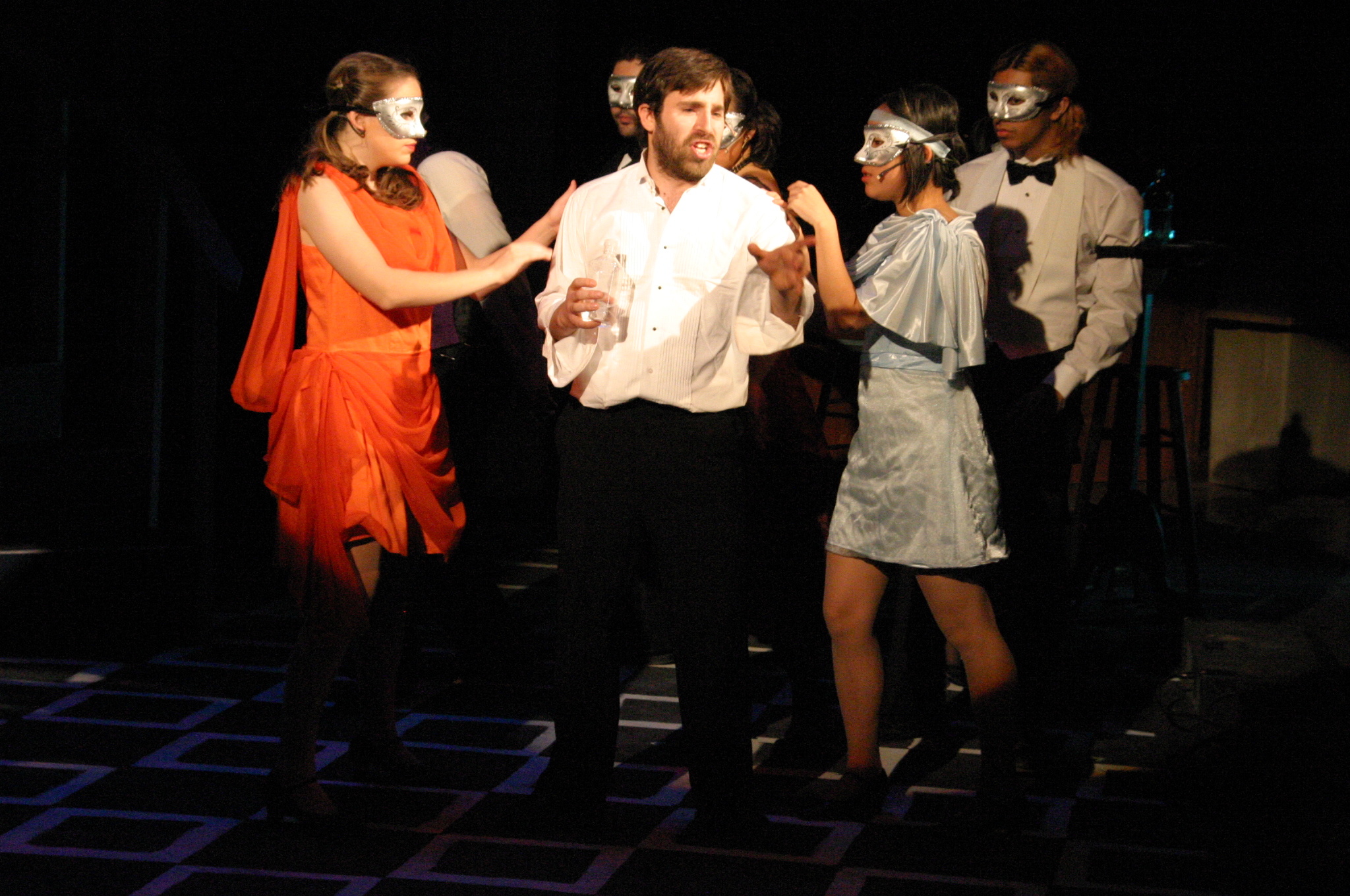 Queenie Was a Blond: Queenie (Carrie A. Lee'10) (credit: Jax Kirtley) Raise the Roof: Dolores, Mae, Gold, Queenie, Burrs, Sam (Karen Wong '10 ,Nicolina Akrahoff '07, Luis Loya '06, Carrie A. Lee '10, Matthew Cibborowski '08, Matt Peairs '09) (credit: Jax Kirtley) Intro to Scene 5 (credit: Jax Kirtley) The Life of the Party: Kate (Danbee Kim '09) (credit: Jax Kirtley) Let me Drown: (Nicolina Akrahoff '07, Matthew Cibborowski '08, Elise Kuo '11 ) (credit: Jax Kirtley) How did it come to this: Queenie, Burrs (Carrie A. Lee '10 and Matthew Cibborowski '08) (credit: Jax Kirtley) |
