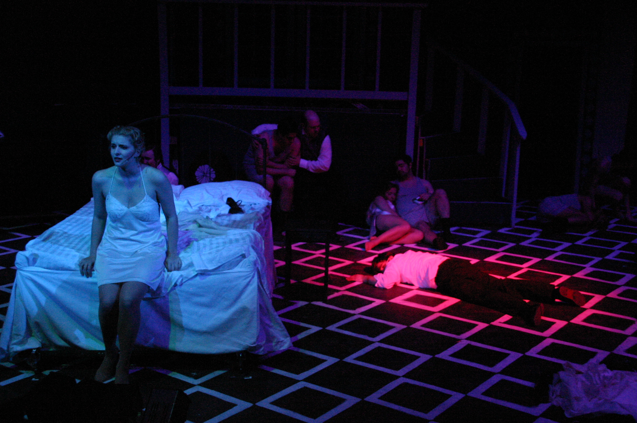 Queenie Was a Blond: Queenie (Carrie A. Lee'10) and the men (Dave Berger, Matt Stern '08, Carlos Cardenas '09, Luis C. Loya '06, Estevan Milo Martinez '08, Darrell Cain '08, Matt Peairs '09) (credit: Jax Kirtley) Poor Child: Kate, Black, Burrs, Queenie (Danbee Kim '09, Matt Stern '08, Matthew Cibborowski '08, Carrie A. Lee '10) (credit: Jax Kirtley) Two of a Kind: Eddie and Mae (Darrell Cain '08 and Nicolina Akrahoff '07) (credit: Jax Kirtley) After Life (credit: Jax Kirtley) Come with Me: foreground: Queenie and Black (Carrie A. Lee'10 and Matt Stern '08) (credit: Jax Kirtley) How did it come to this: Queenie (Carrie A. Lee'10) (credit: Jax Kirtley) |