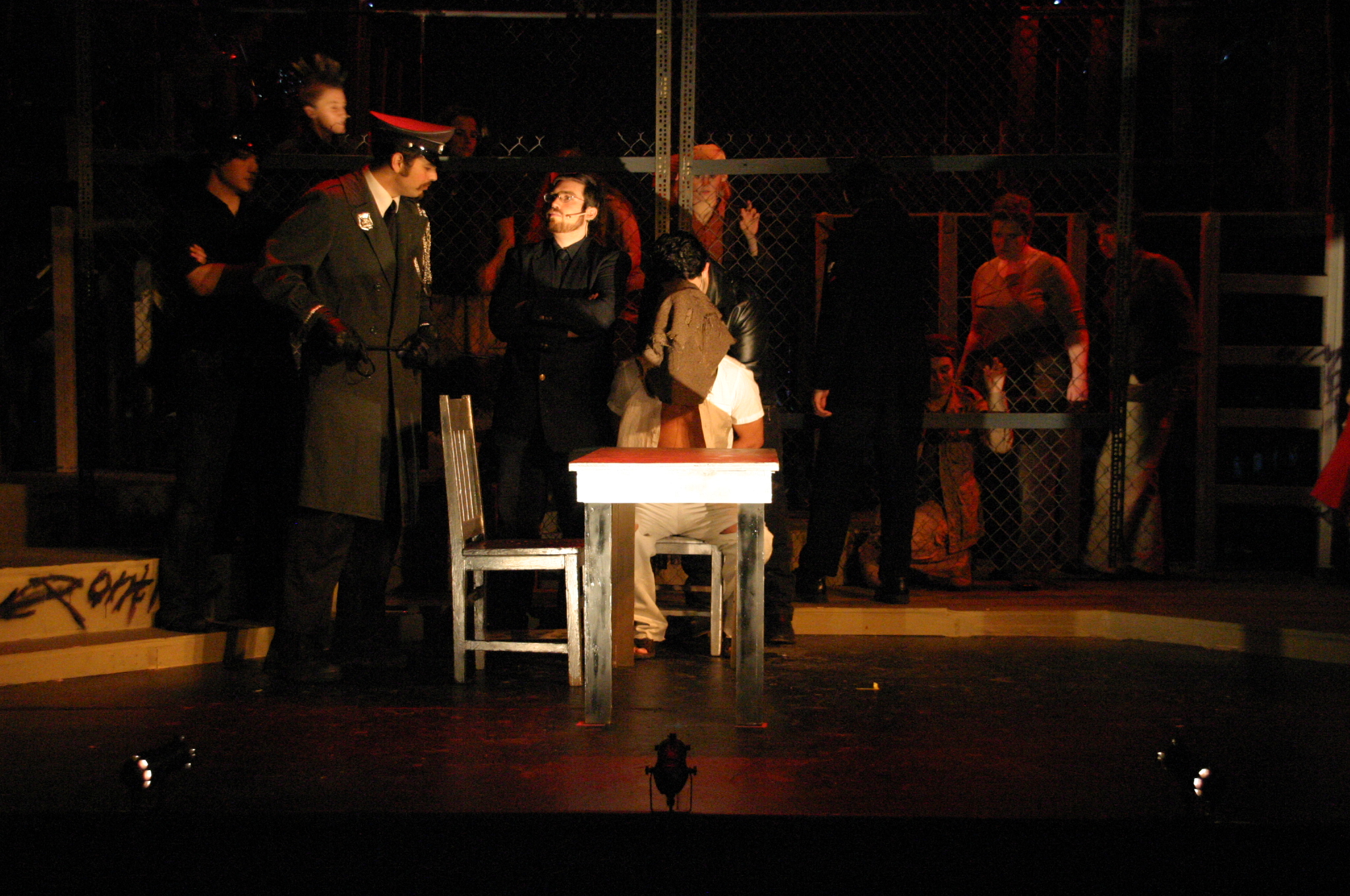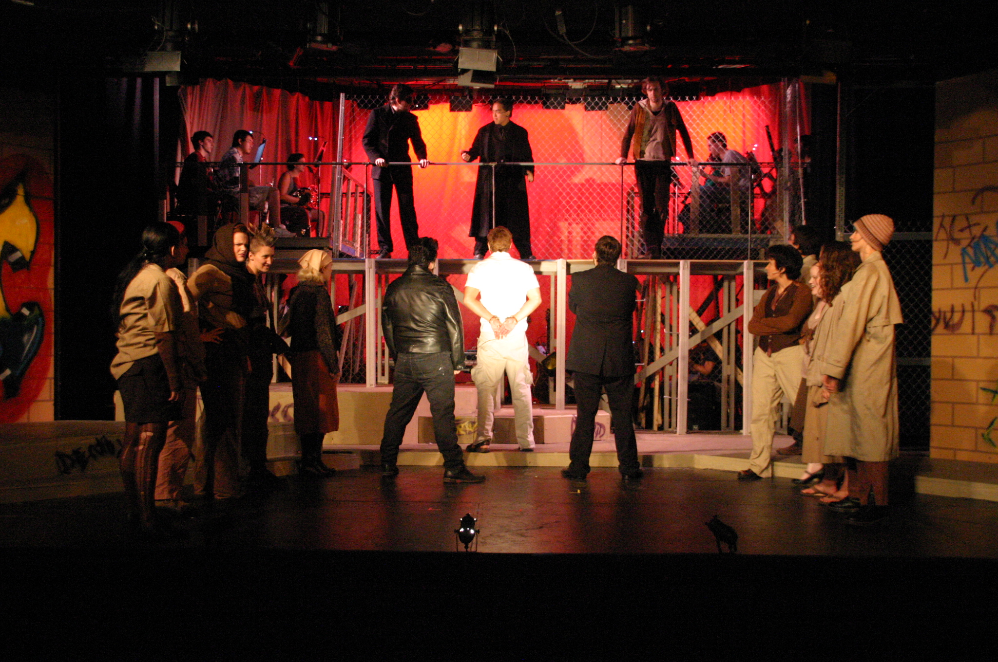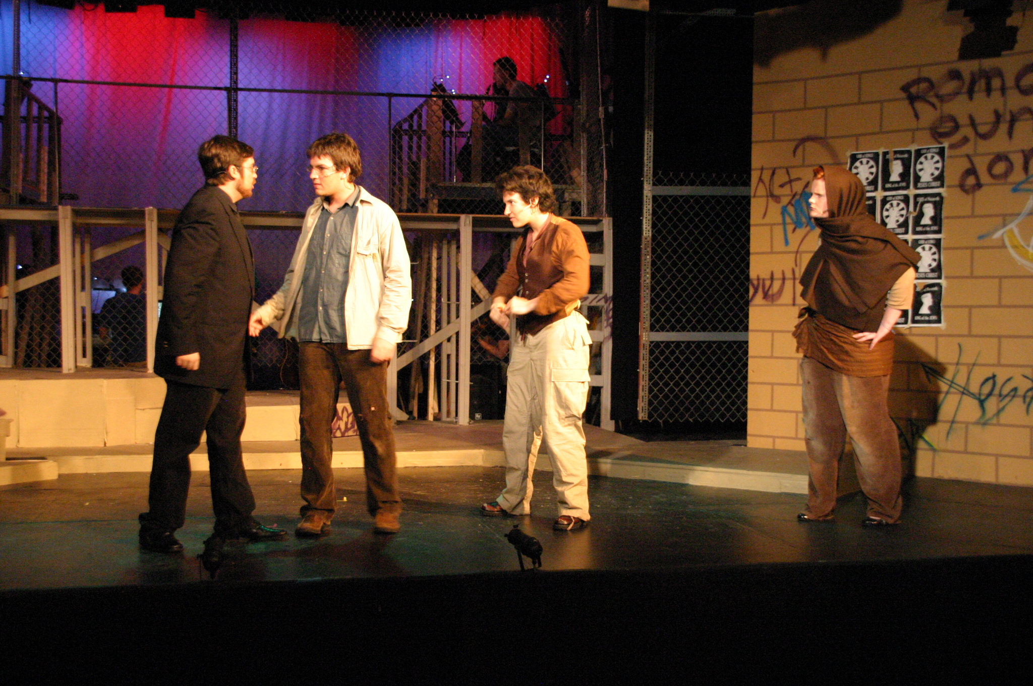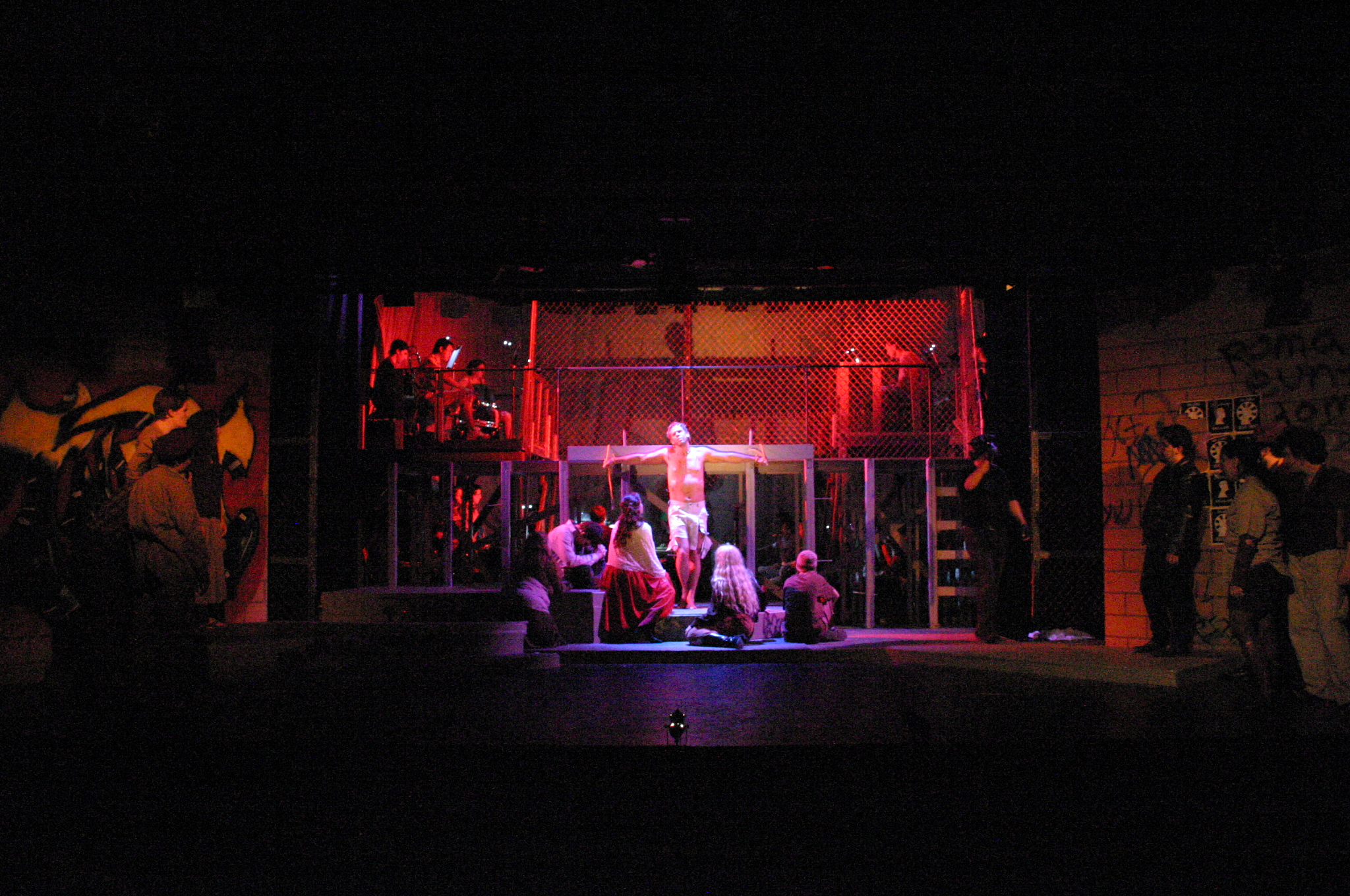 Heaven on Their Minds - (balcony) Brad Smith, Rich Fulkerson (foreground) Kevin Smith, Carrie Lee '10, Sallie Guthrie '13, JB Parkes '13, Helen O'Keefe '09, Betsy Flowers '12, Sally Peach '09, Luis Loya '06, Josh Marcus, Hubert Hwang '07, Matt Peairs '09 (credit: Jax Kirtley'96) Everything's Allright - (foreground) Carrie Lee '10, Kevin Brown (background) Rachel Bowens-Rubin '11, Sally Peach '09, Rich Fulkerson, JB Parkes '13, Helen O'Keefe '09, Emily Rosser '12, Dawn Erickson '07, Sally Guthrie '13 (credit: Jax Kirtley'96) Simon Zealotes - (balcony) Betsy Flowers '12 (foreground) - Dawn Erickson '07, Tori Root, Daniel Ruiz (background) Luis Loya '06, Emily Rosser '12, Sally Guthrie '13, JB Parkes '13 Josh Marcus, Jasmine Florentine '11, Helen O'Keefe '09, Rachel Bowens-Rubin '11, Sally Peach '09 (credit: Jax Kirtley'96) The Temple - Helen O'Keefe '09, Emily Rosser '12, Kevin Brown, Rachel Bowens-Rubin '11, Carrie Lee '10, Tori Root (credit: Jax Kirtley'96) Damned for All Time - (foreground) Hubert Hwang '07, Rich Fulkerson, Matt Peairs '09 (background) Daniel Ruiz, Josh Marcus (credit: Jax Kirtley'96) Gethsemene (I Only Want to Say) - (foreground) Kevin Brown (background) Helen O'Keefe '09 (credit: Jax Kirtley'96) The Arrest - (balcony) Matt Peairs '09, Hubert Hwang '07, Rich Fulkerson (foreground) - Dawn Erickson '07, Betsy Flowers '12, Helen O'Keefe '09, Rachel Bowens-Rubin '11, Sally Guthrie '13, Luis Loya '06, Kevin Brown, Josh Marcus, Emily Rosser '12, JB Parkes '13, Tori Root, Sally Peach '09, Jasmine Florentine '11 (credit: Jax Kirtley'96) Pilate and Christ - (foreground) Brad Smith, Kevin Brown (background) Josh Marcus, Tori Root, Sally Guthrie '13, Emily Rosser '12, Betsy Flowers '12 (credit: Jax Kirtley'96) Trial Before Pilate (Including the 39 Lashes) - (foreground) Brad Smith, Kevin Brown (background) Emily Rosser '12, Greg Lohman PhD '07, Carrle Lee '10, Josh Marcus, JB Parkes '13, Jasmine Florentine '11, Matt Peairs '09 (credit: Jax Kirtley'96) The Crucifixion - Betsy Flowers '12, Helen O'Keefe '09, Sally Peach '09, Tori Root, JB Parkes '13, Carrie Lee '10, Kevin Brown, Sally Guthrie '13, Jasmine Florentine '11, Daniel Ruiz, Luis Loya '06, Dawn Erickson '07, Greg Lohman PhD '07, Emily Rosser '12 (credit: Jax Kirtley'96) |