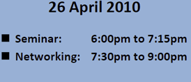 Building Business Opportunities from Technology Innovation – The MIT WayThe Deshpande Center at MIT is world famous for building business opportunities around Technology Innovation, and its approach is critical for economic growth in Singapore from the new knowledge-based economy. Seminar and Networking Event (Limited to 130) Venue: The Pod, Level 16, National Library Board The lessons learned at MIT will be discussed in terms of the larger entrepreneurial ecosystem in Singapore. The expanded process of technological innovation will address the role of education, research grants, catalysts, mentorship, and the broader investment/entrepreneurship community. The challenge is to solve important societal problems with technology innovation. There is a gap, however, between technology, push and market pull that can be addressed by bringing market definition closer to technology development. Learn how this is done at MIT, using the Deshpande Center model and in the SMART Innovation Centre in Singapore. This seminar and the following networking event should be attended by anyone interested in further developing the Singapore ecosystem in knowledge-based entrepreneurship. The seminar will run from 5:30pm to 7:00pm and it will be followed by a networking event from 7:00pm to 9:00pm (refreshments and canapés will be served). Best regards, Howard Califano Director, Smart Innovation Centre Event Registration for 26 April 2010: Please select session below and RSVP your attendance to jes@smart.mit.edu by 20 April 2010.