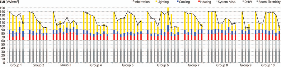 Being able to read thermal simulation results and to adapt one’s design accordingly has become an essential skill for graduating and practicing architects. In this study we developed and evaluated an innovative way of how this skill can be taught via a 90-minutes in-class exercise or ‘game’ based on DesignBuilder/EnergyPlus. The game was tested in a class of 47 architecture students who competed to generate the lowest Energy Use Intensity (EUI) for an office building in Boston. Design upgrades were associated with a cost premium and the overall upgrade budget was capped. The EUIs of the ten final submissions were 22% to 31% below the base variant (see figure below). While student essays revealed a clear preference for game-based learning vis-a-vis conventional teaching methods, the authors further propose that the game nourishes the emergence of an energy modeling ‘culture’ within schools of architecture that may lead to enhanced communication between architects and energy modelers. You can download the DesignBuilder files that we used for the game below. Download old DesignBuilder game files and instructions here.