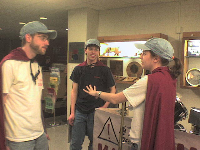 Yep, that's right! We wear capes and engineer's hats, play electric keyboard and kazoos, and stun unsuspecting frat boys (like the one in the background) with our awesomeness. Fall 2006 |