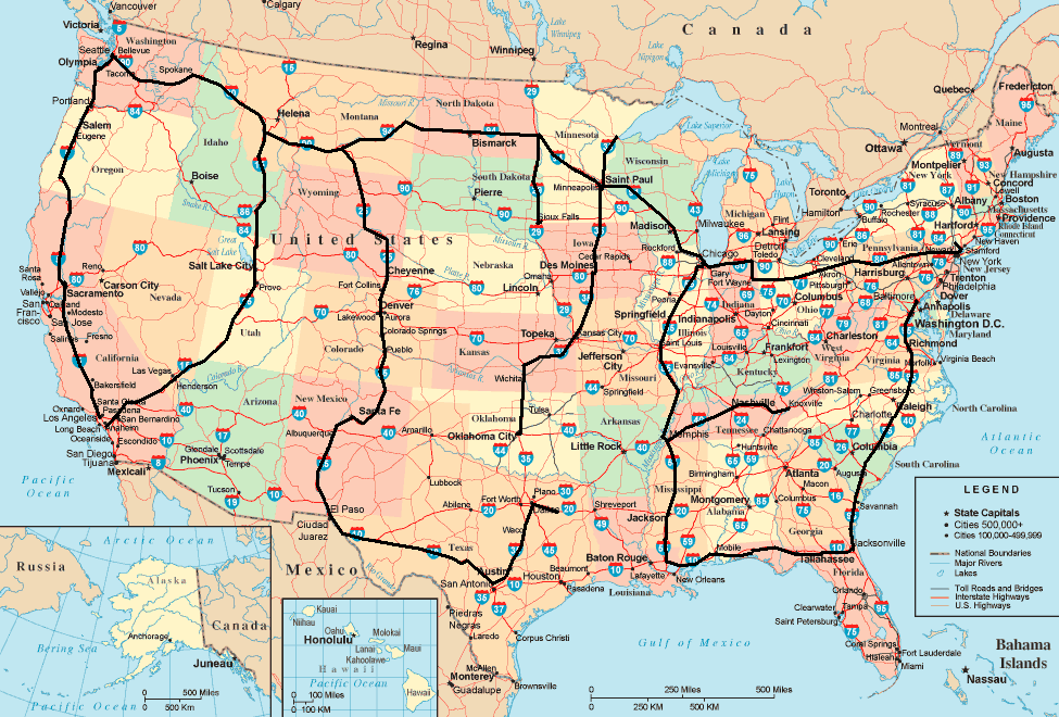 These are interstate highway numbers, and numbers connected with a line intersect. Some of the three-digit ones are ambiguous if taken alone, since they are used locally in multiple states, but when considered with all their intersections, each is unique. For instance, there are interstate 405's in California, Oregon, and Washington, and all of them meet interstate 5, but only the one in Washington also meets interstate 90.