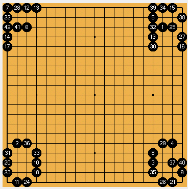 Black to Play by Ray Jones (with thanks to Kevin Zhao, Zack Grossbart, and Derek Kisman for testsolving and editing help) These are straight Life and Death Go problems. Black can kill white, or live (possibly in seki) in each problem. Superimposing the best move for black in each puzzle on a single board gives the answer FROG.